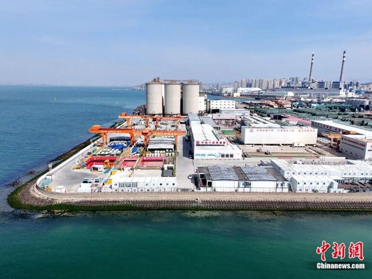 青岛胶州湾第二隧道项目地面施工现场。(无人机照片)丁翔摄