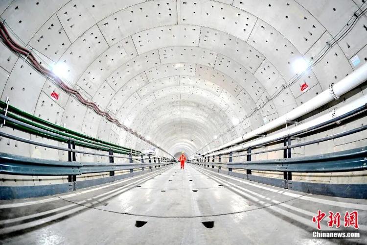 工人在青岛胶州湾第二隧道项目成型隧道内进行巡检。丁翔摄