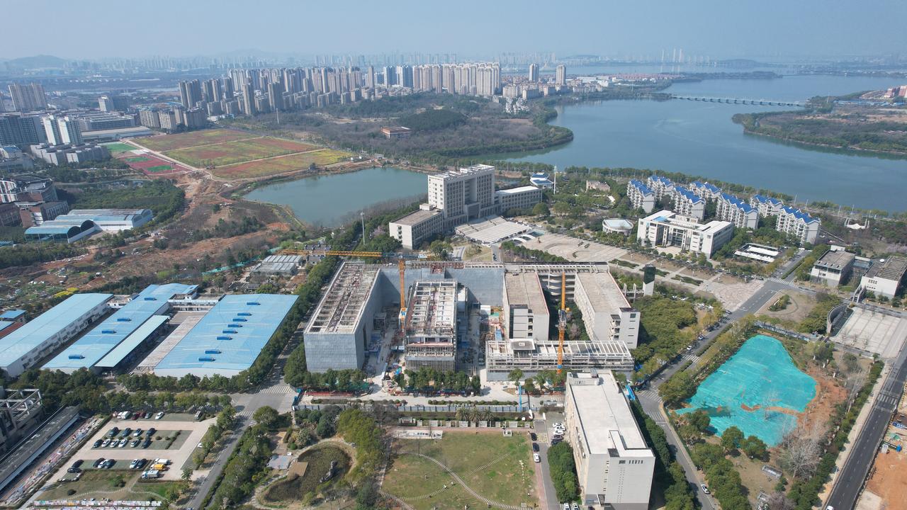 3月11日,在湖北建院新建教学楼和学生宿舍项目现场,主体结构已经全面封顶,工人们正有序推进装饰装修作业,整个工地干净整洁、智能高效。