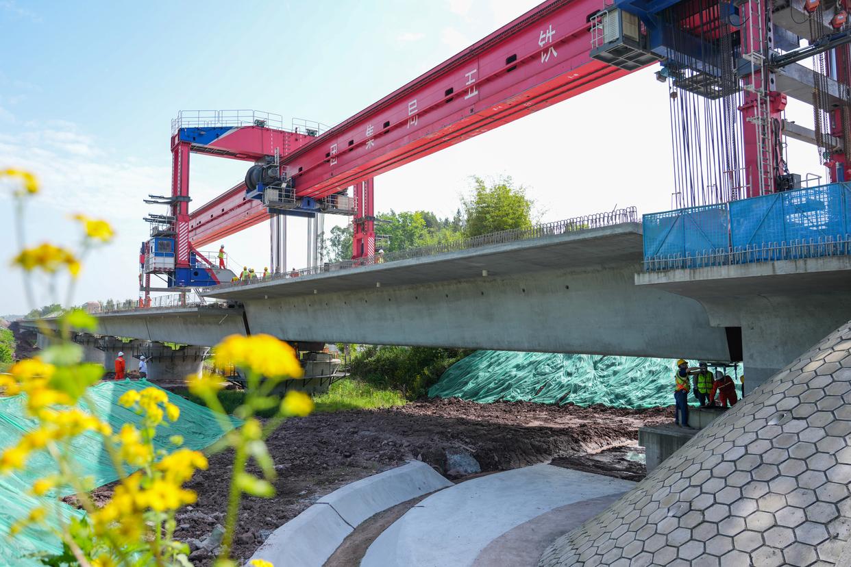 4月17日,由中铁五局承建的西渝高铁双碉楼特大桥最后一孔箱梁完成架设,标志着全长约115公里的西渝高铁达州至广安段共1520孔箱梁架设完工,为下一步无砟轨道施工和铺轨创造了条件。西渝高铁是西安到重庆的高速铁路,全长739公里,设计时速350公里,是我国“八纵八横”高铁网京昆通道和包(银)海通道的重要组成部分。