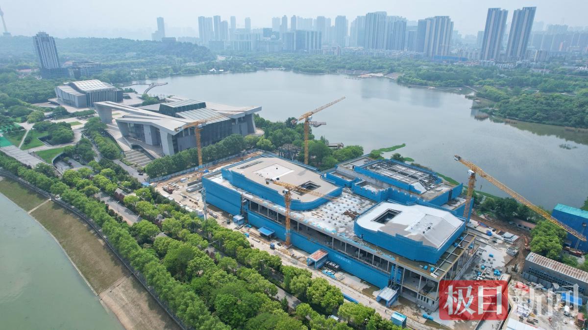 春日晴好,万物勃发。近日,极目新闻记者在月湖之畔的武汉戏曲艺术中心项目建设现场看到,项目主体结构除多功能灯塔区域外已全面封顶,目前正进行构造柱及墙体砌筑施工。这座承载武汉“戏码头”文化底蕴的新地标风华初现,预计将于2027年建成投用,焕新荆楚戏曲传承舞台。