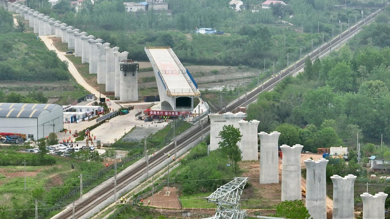 4月21日,在安徽省六安市叶集区境内,由皖赣铁路安徽公司建设管理、中铁十一局承建的合武高铁跨宁西铁路特大桥230米T构连续梁成功完成20.47度“空中转体”,跨越宁西铁路。该梁总重19157.8吨,此次成功转体标志着全线控制性节点工程取得重大进展,为后续桥面系施工奠定了坚实基础。合肥至武汉高速铁路是我国“八纵八横”高铁网沿江通道的重要组成部分,设计时速350公里。线路建成后,将在合肥至武汉间形成新的高铁大通道,进一步优化长江经济带铁路网布局。