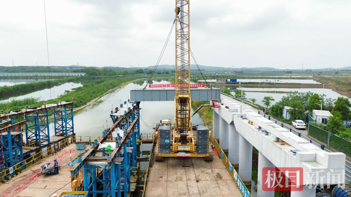 4月24日,随着现场总指挥一声令下,中建三局建设发展公司武汉公司江夏S101项目关键控制性节点——三门湖特大桥首片钢箱梁在大型履带吊的精准起吊下,平稳落座于指定支墩上,标志着该桥正式进入上部结构施工新阶段。