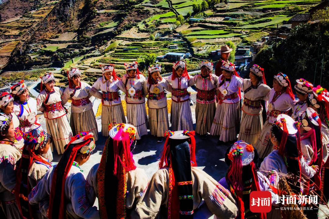 木里民族文化绚丽多彩,境内多民族、多宗教和谐相融。图为俄亚纳西族乡的传统舞蹈。张梁摄