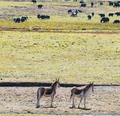 在嘉塘,使用草原的有藏原羚、藏野驴,以及数量不多的盘羊,当然,还有鼠兔和旱獭,这些包括家畜在内的食草动物,供养着诸多食肉动物以及人类。人类和野生动物,因为草地被联系在了一起。