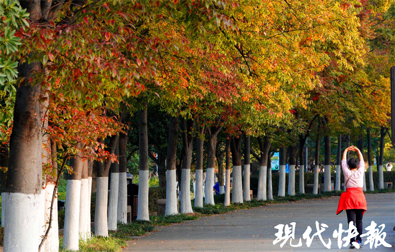 “等到昼夜温差拉开后,彩色树叶将会呈现出更加缤纷夺目的色彩。”朱凯表示,以枫叶为例,枫叶经霜方红艳,就是说必须要有低温后,才能呈现明亮的色彩,南京的枫叶一般要到11月底12月初是最佳观赏期。