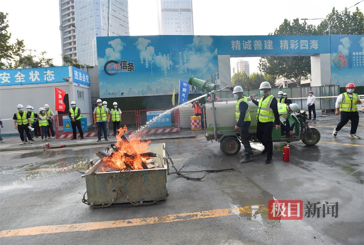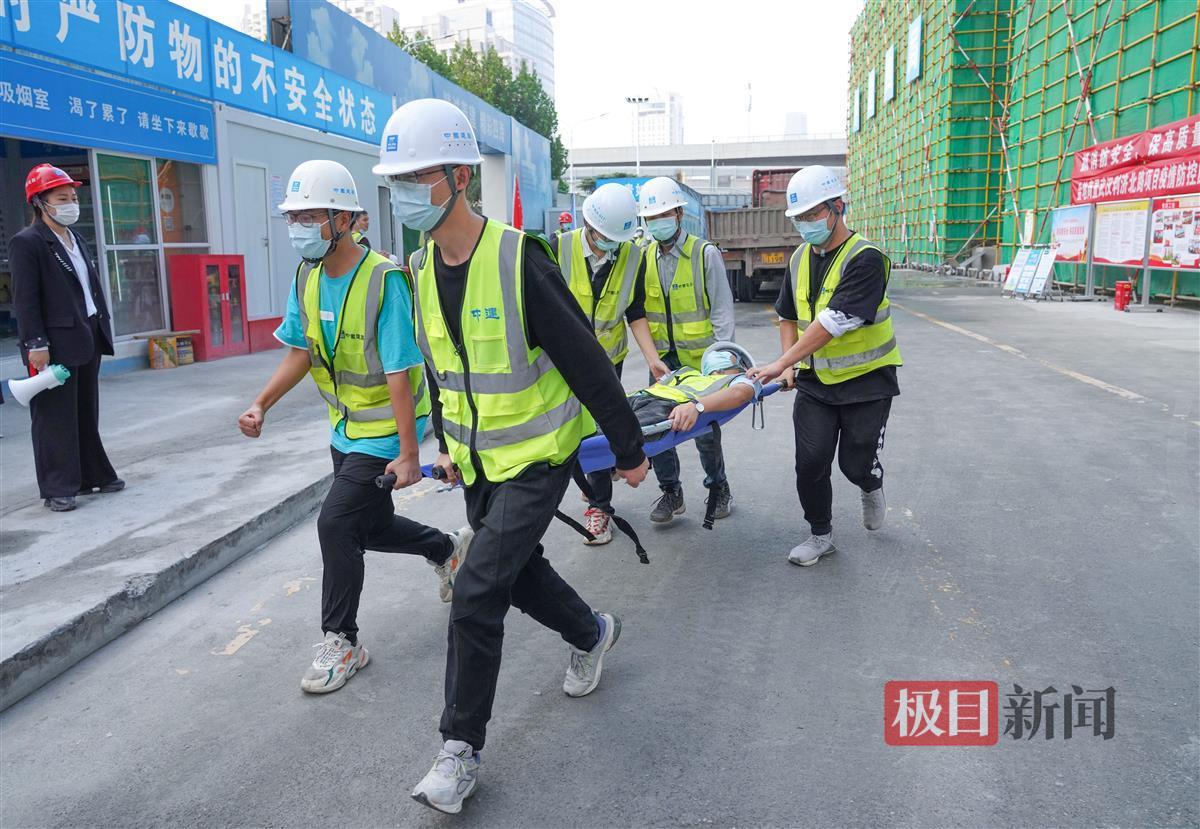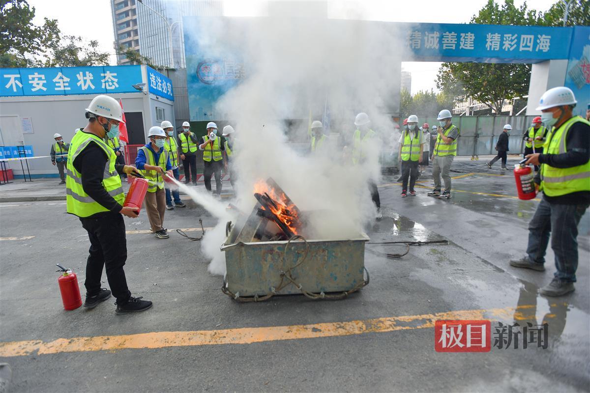 11月11日, 一材料堆场内,由于工人乱扔烟头导致模板木枋着火,现场火情无法控制。现场5名工人,4人顺利跑出,1人慌乱中摔伤无法动弹。现场管理人员立即报告项目经理,项目经理按照程序报告相关单位并马上集结应急小组启动应急救援预案。在各救援队通力合作下,受伤人员被救出,火灾得到了有效控制。原来,这是中建四局武汉金地商置利济北路项目工地消防应急演练的一幕。