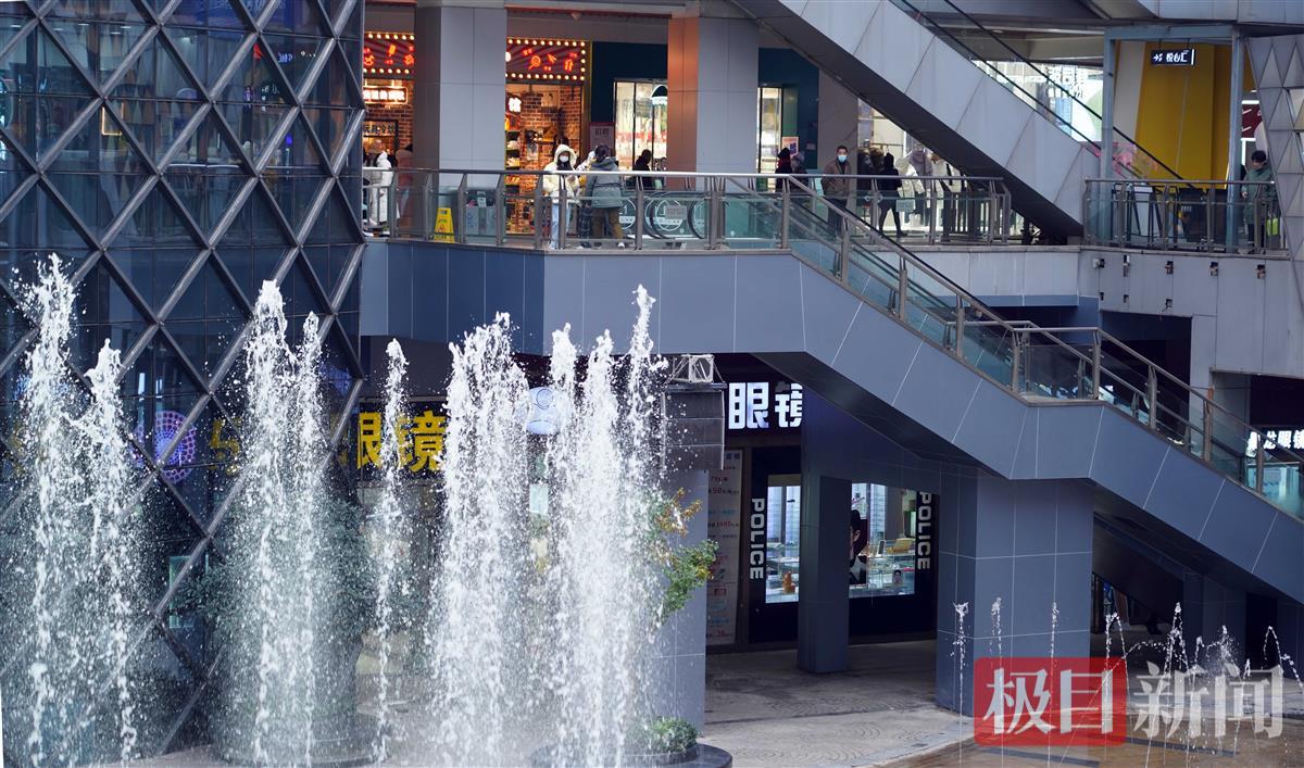 12月8日,武汉光谷步行街音乐喷泉,再次水舞飞扬,让游客着迷。