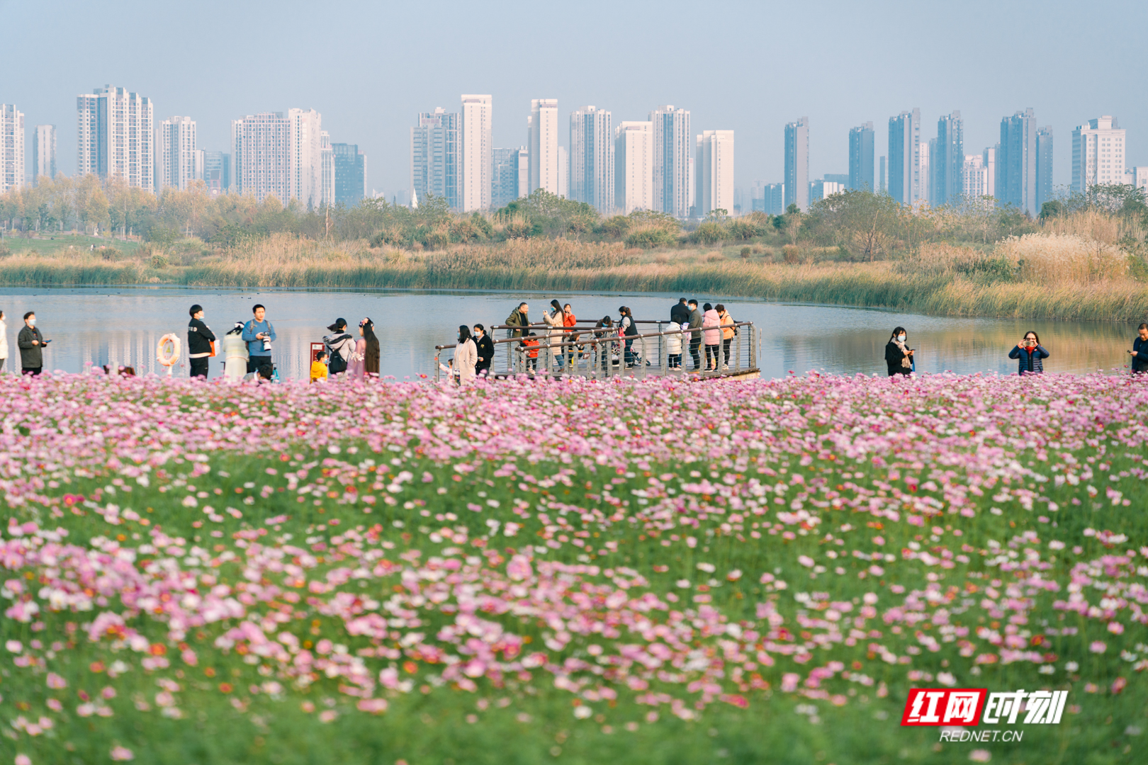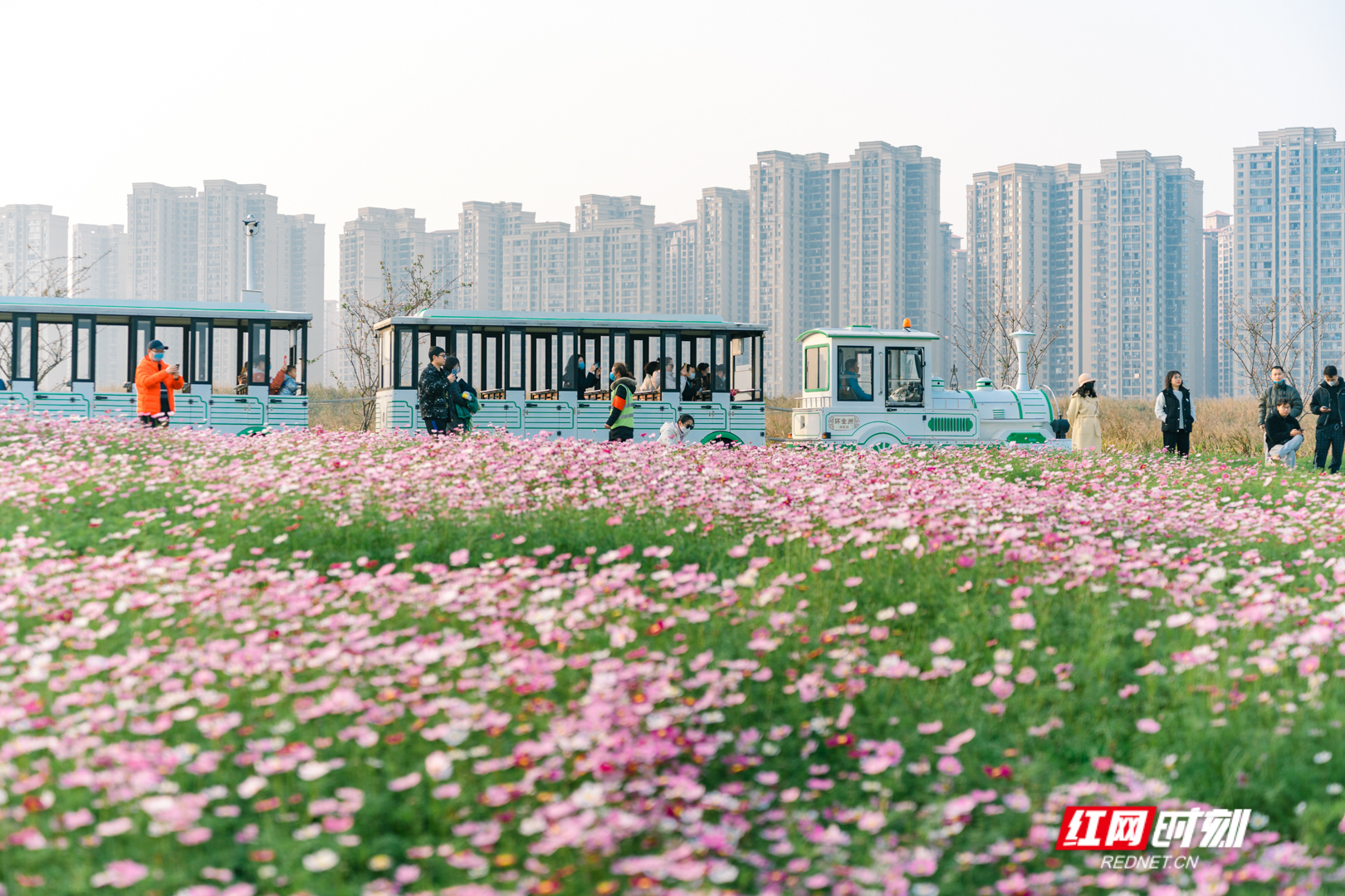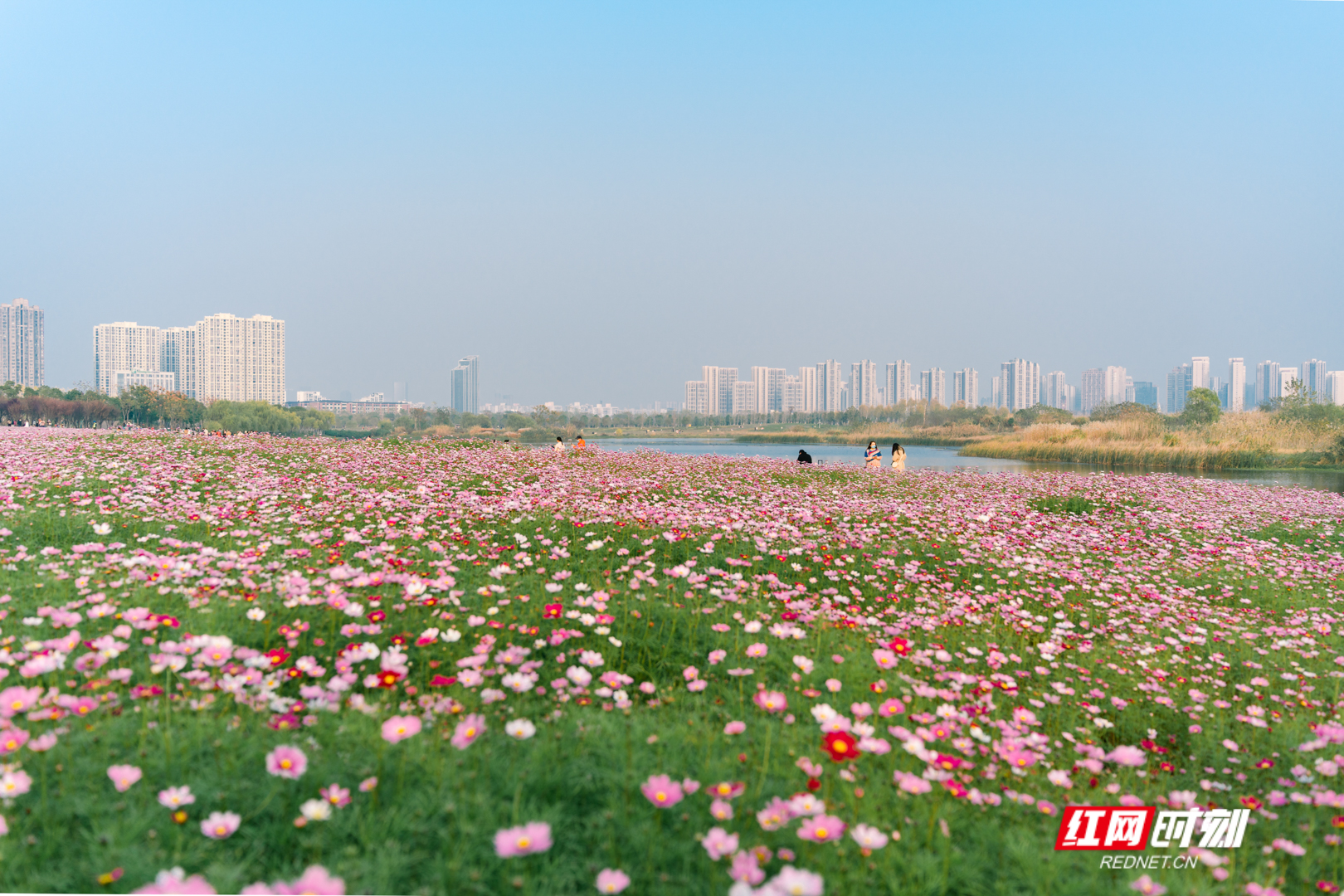 12月10日,连日阴雨的长沙终于放晴,洋湖国家湿地公园的格桑花也在这时悄悄绽放。从远处望去,连绵起伏的格桑花海姹紫嫣红,给人一种春天来临的感觉。