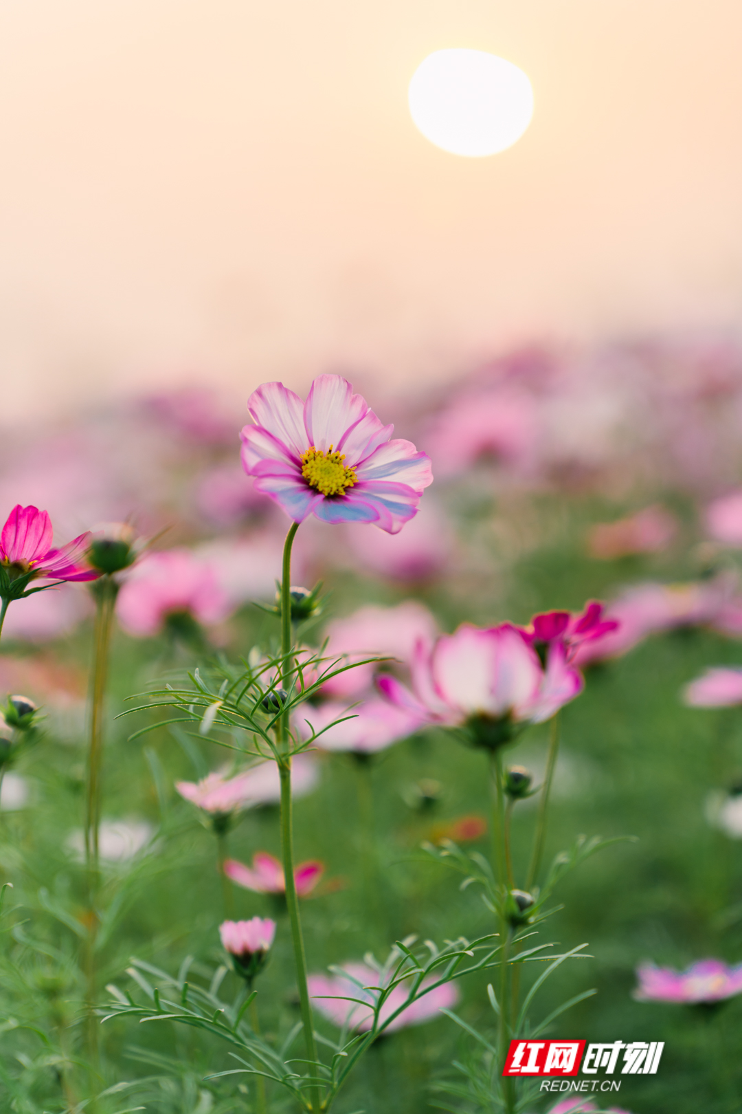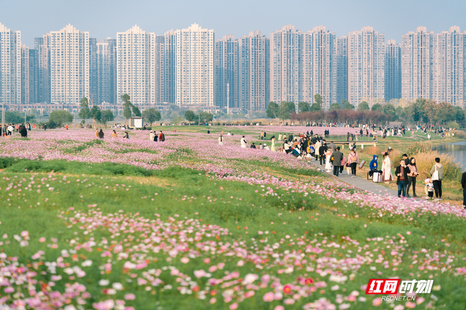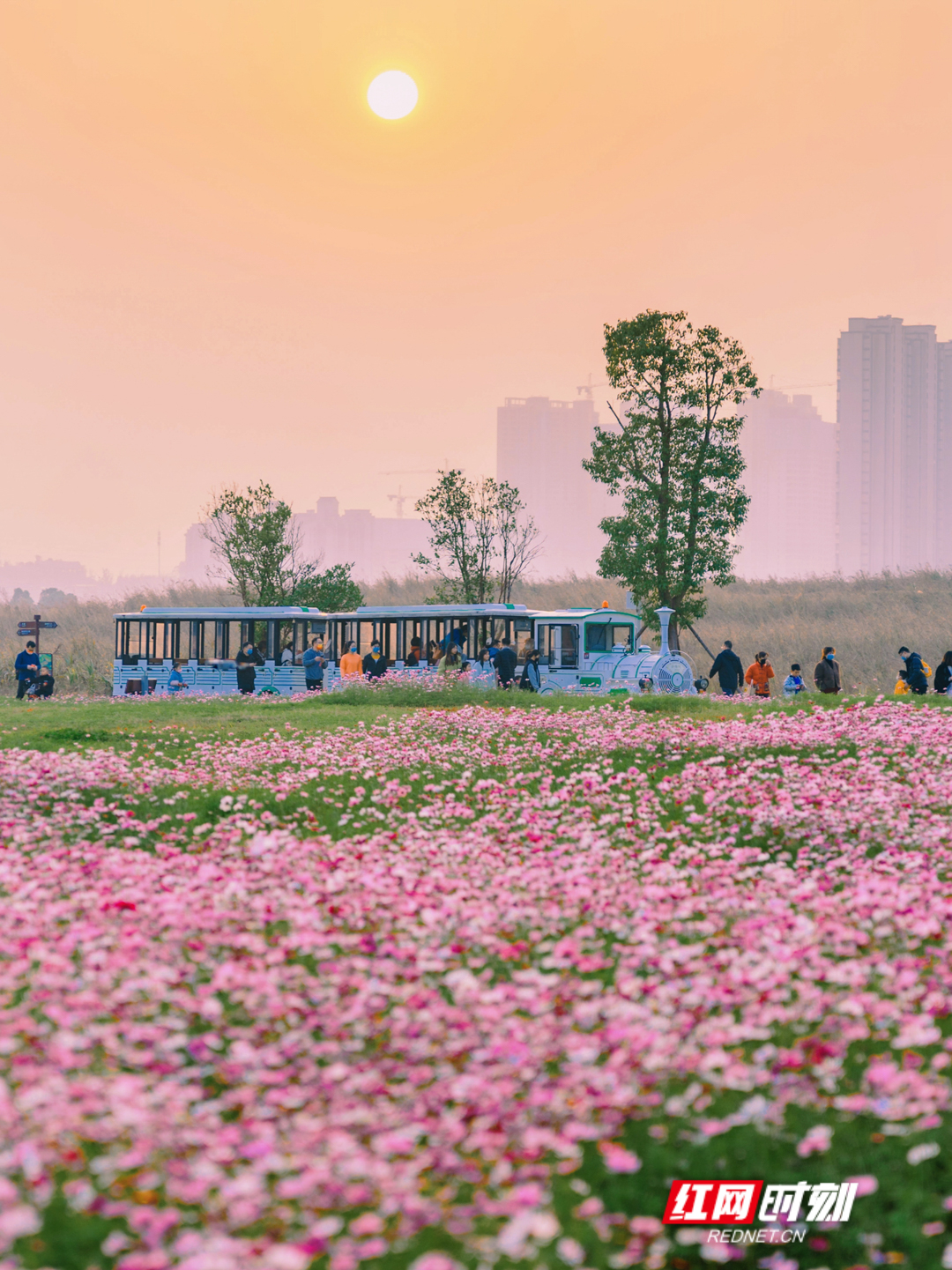 12月10日,连日阴雨的长沙终于放晴,洋湖国家湿地公园的格桑花也在这时悄悄绽放。从远处望去,连绵起伏的格桑花海姹紫嫣红,给人一种春天来临的感觉。