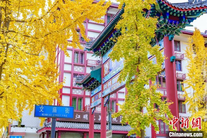 文庙在金黄的银杏叶下非常耀眼。 张志强摄