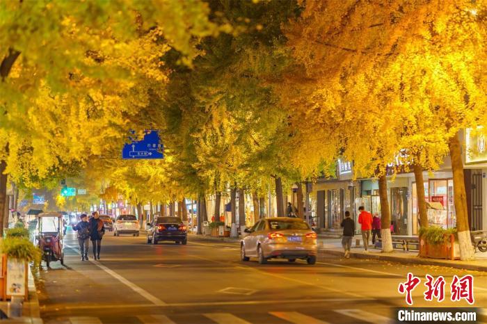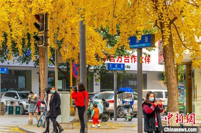市民漫步在银杏树下。 张志强摄