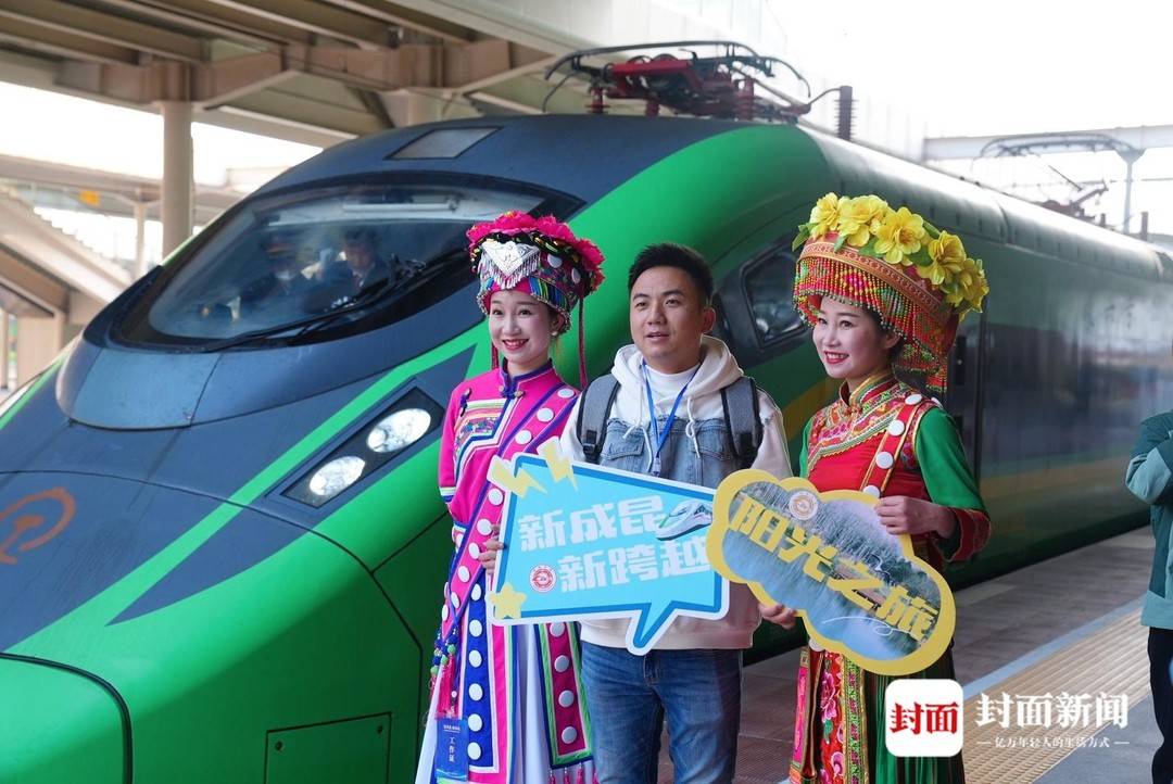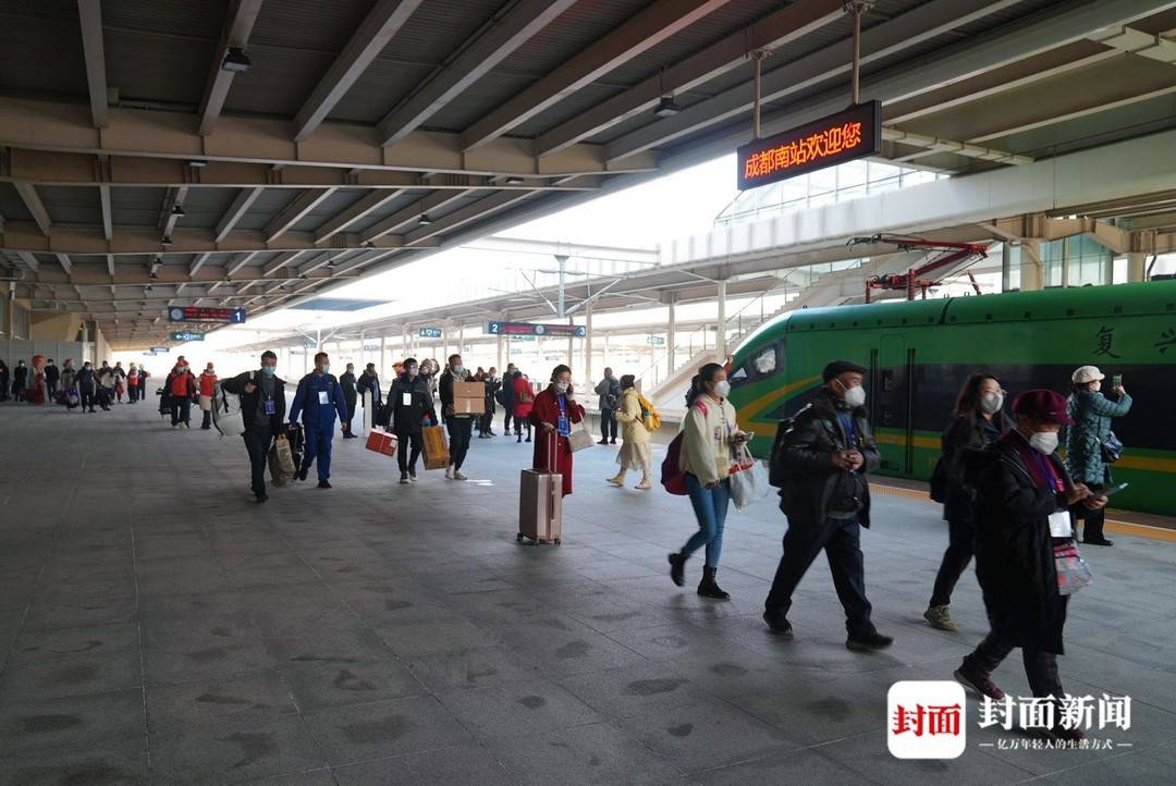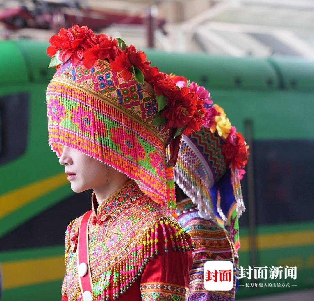 ▲成都南站站台上,攀枝花市傈僳族的传统服饰亮眼吸睛。