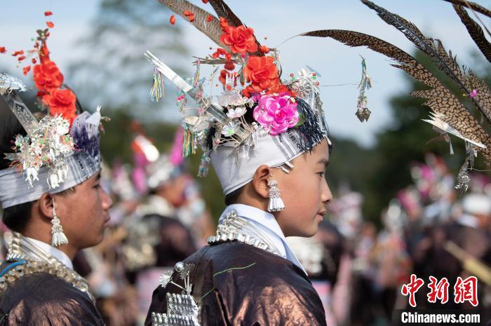 在贵州省从江县谷坪乡山岗苗寨,苗族同胞在芦笙节活动上。 吴德军摄