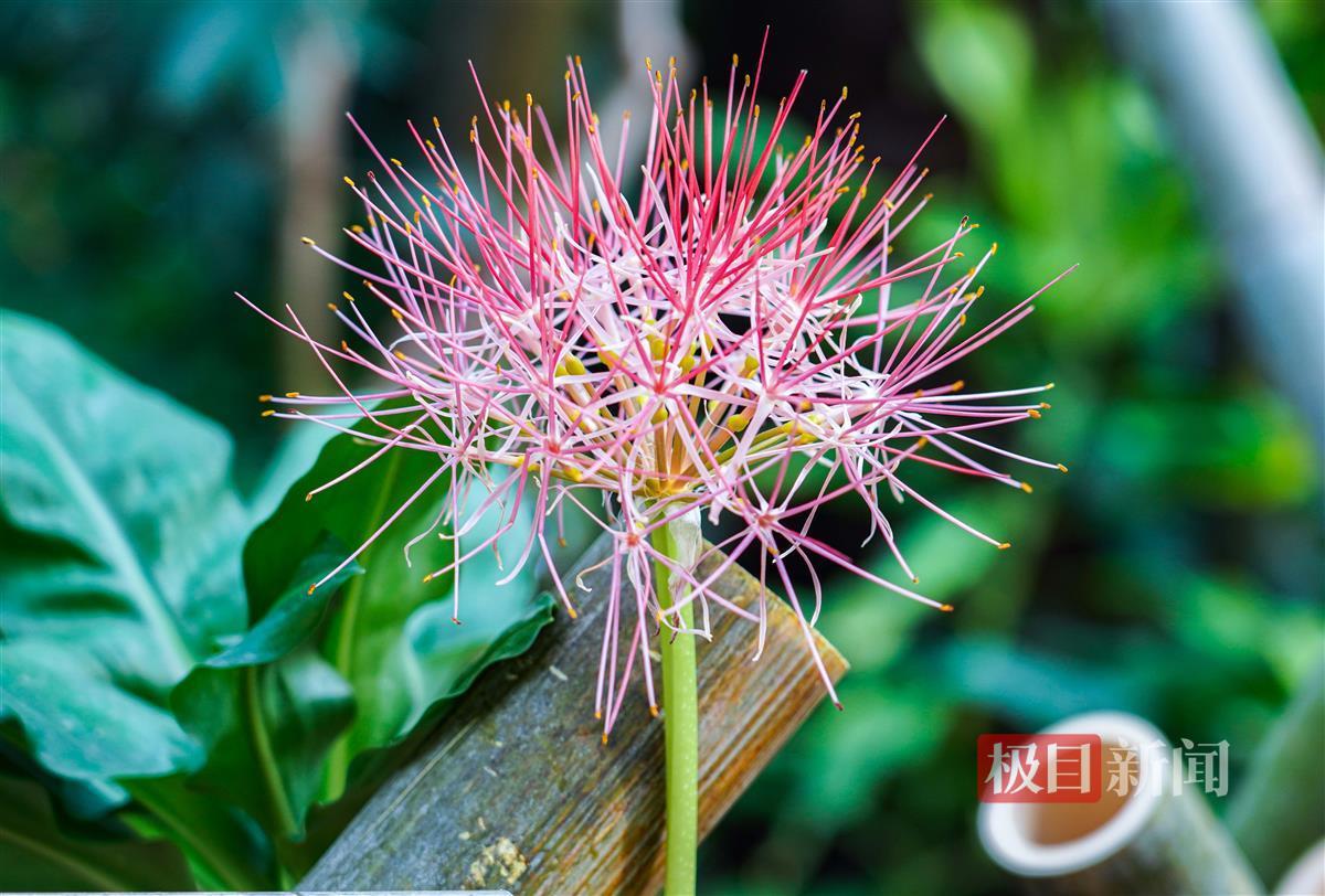 来自武汉植物园非洲温室保育的多种非洲植物首次登场亮相,红红火火的网球花,花朵似一团火焰,肯尼亚剑龙角和大花豹皮花花朵美似星星,却以“恶臭”吸引昆虫,趣蝶莲叶片犹如蝴蝶飞舞,还有豹纹伽蓝菜、麻点百合、匍茎鹅绒藤等特色植物一展非洲风情。