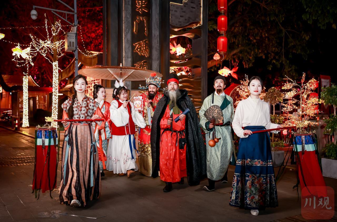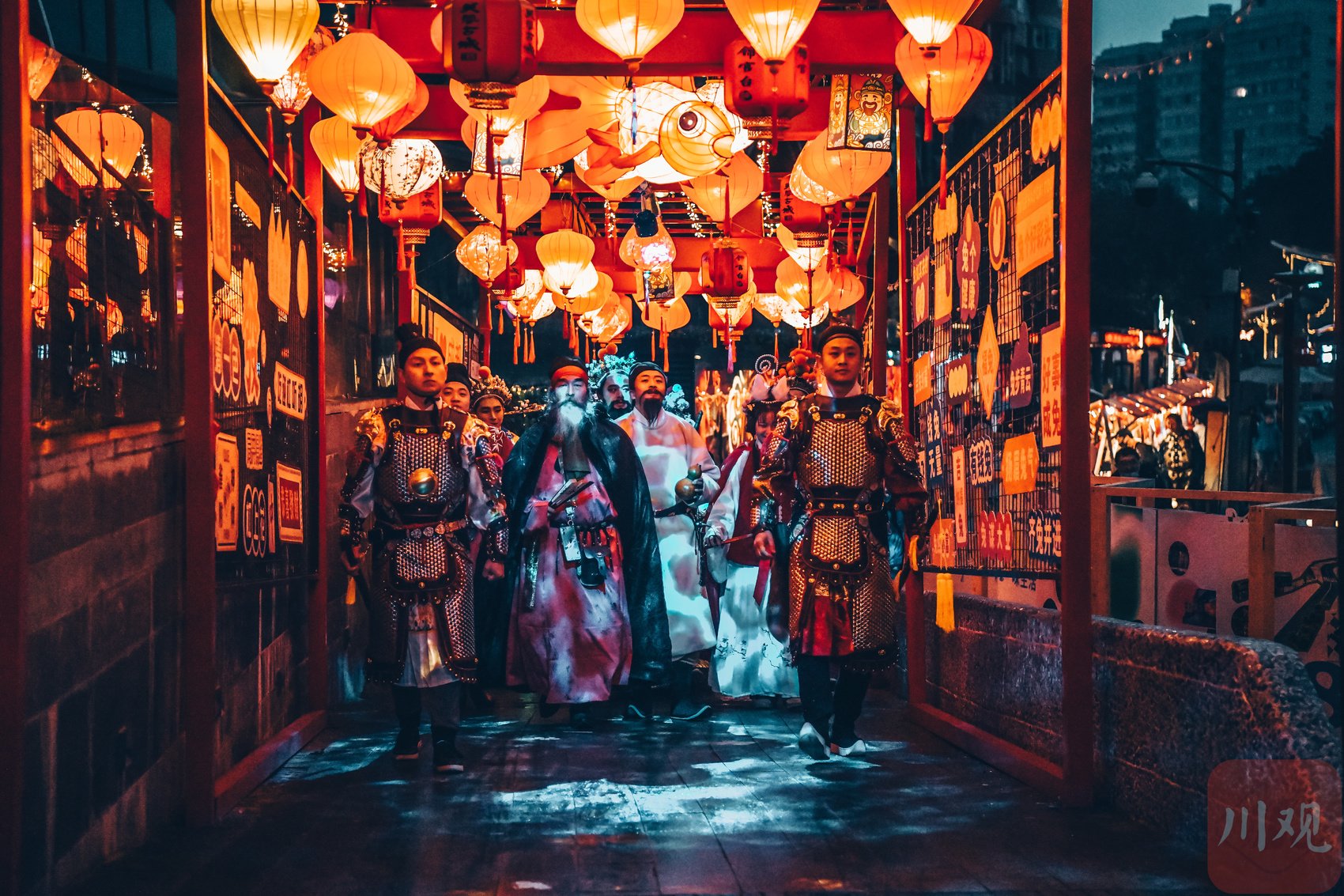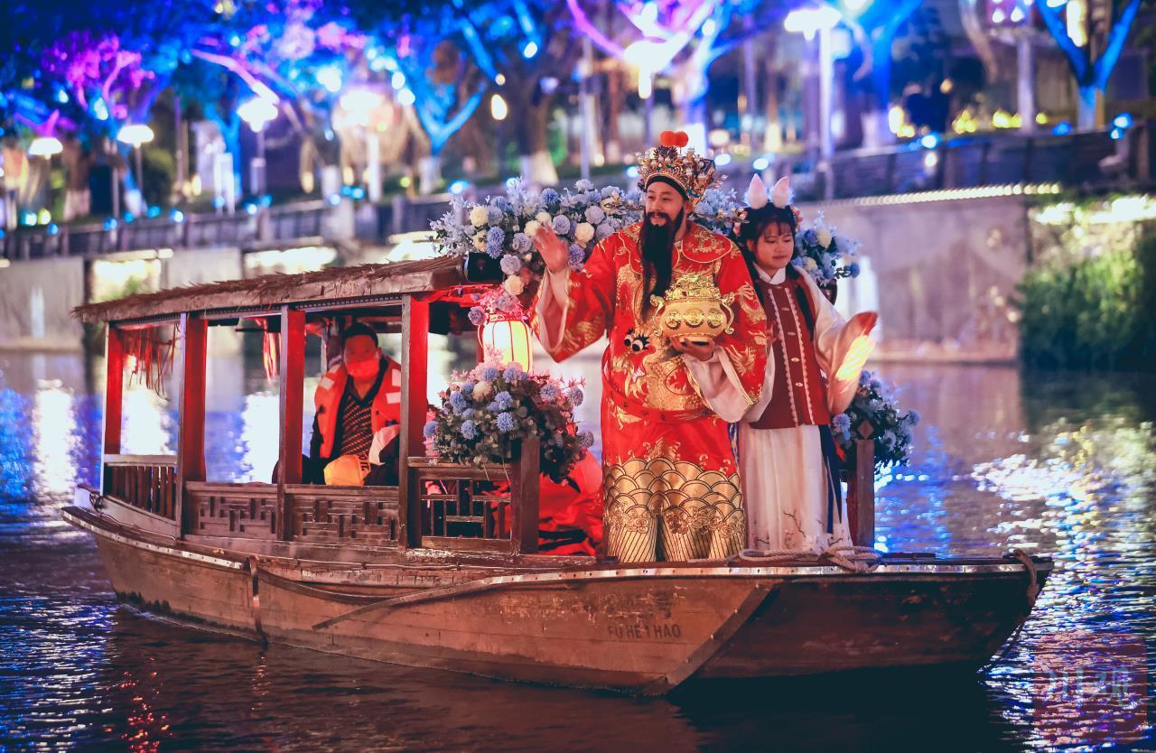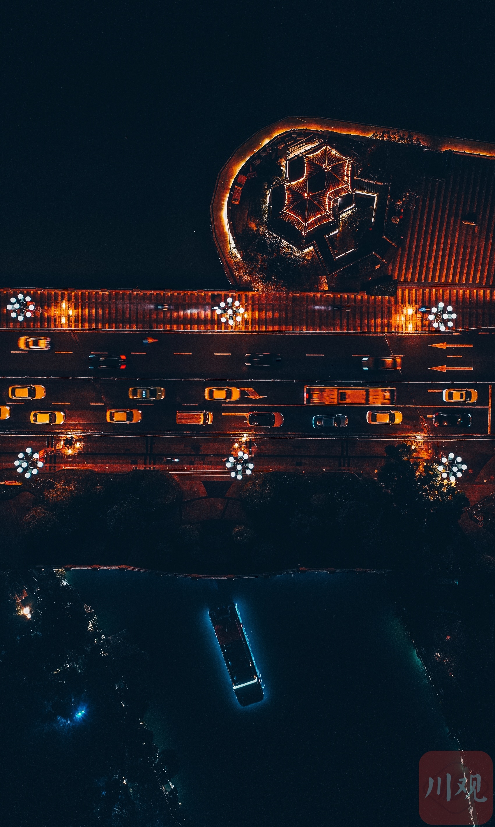 锦江边上,各式灯光布景交相辉映,处处流光溢彩、火树银花。市民成群结队登上小船去丈量这座城市的人文故事,品味独属于成都的城市气质。