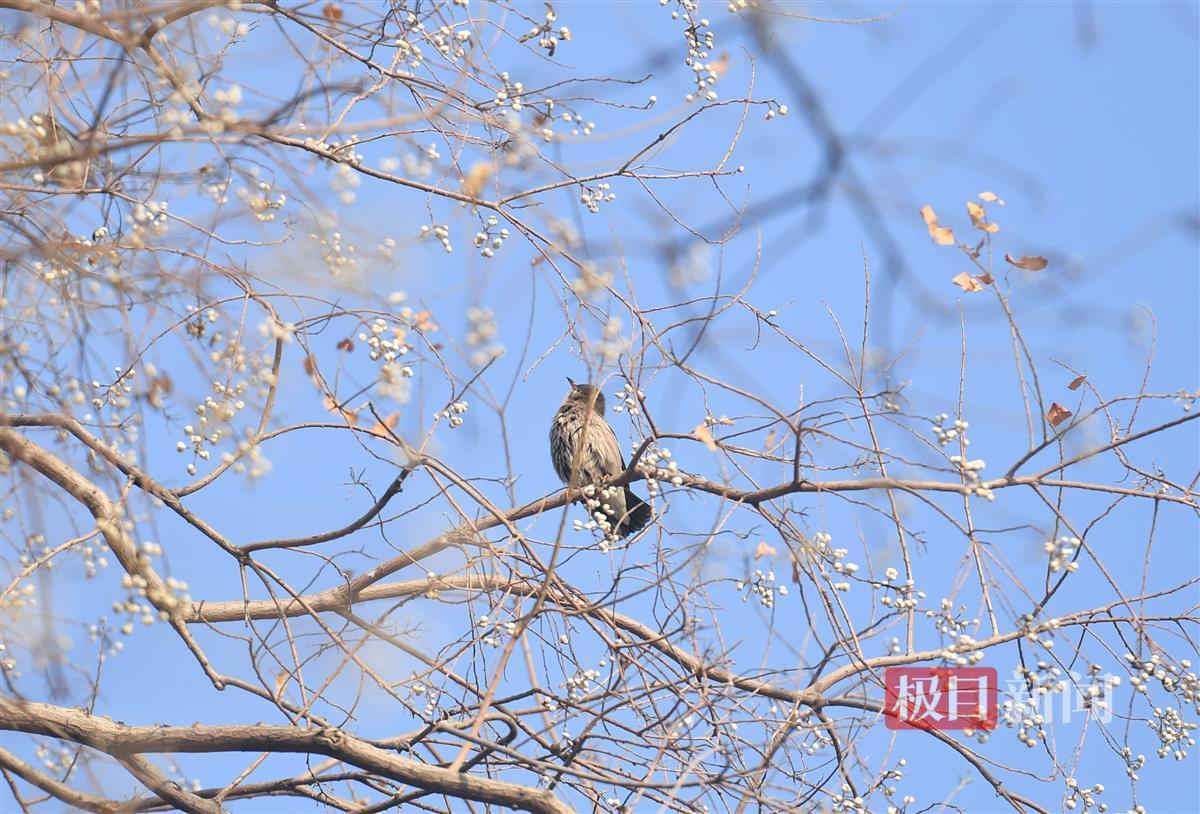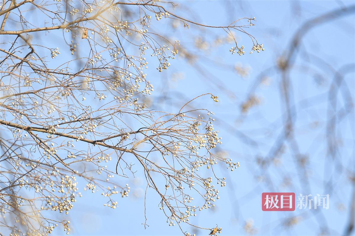 1月5日,武汉沙湖公园。落叶后的乌桕树,白色的乌桕籽挂满枝头,恰如白花朵朵,故有诗赞曰:“偶看桕树梢头白,疑是江梅小着花。”乌桕叶形秀丽,似菱形、似爱心,经过秋雨寒霜后,树叶由青变黄,由黄变红,十分美丽。到了冬天,白色的乌桕籽又是一番美丽景象。乌桕籽本身含油,还有工业和药用价值。