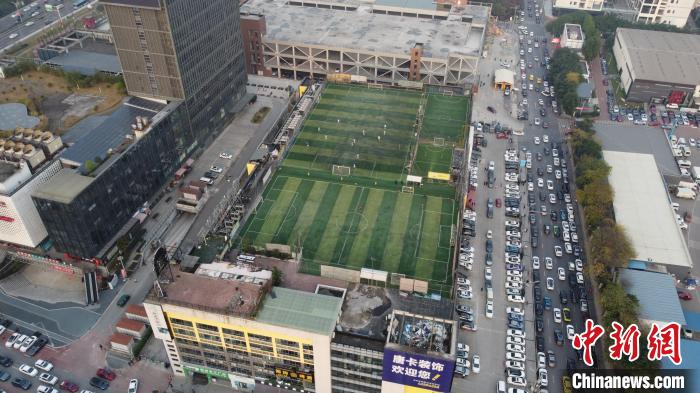 图为重庆两江新区一大楼楼顶建有两块8人制足球场和一块5人制足球场。 肖江川摄