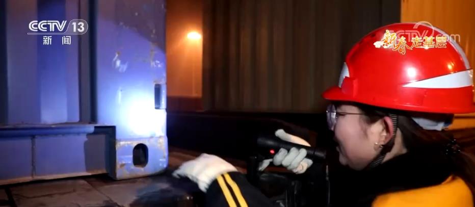 班列出发前3小时,李文琛正在对班列进行最后的安全检查。
