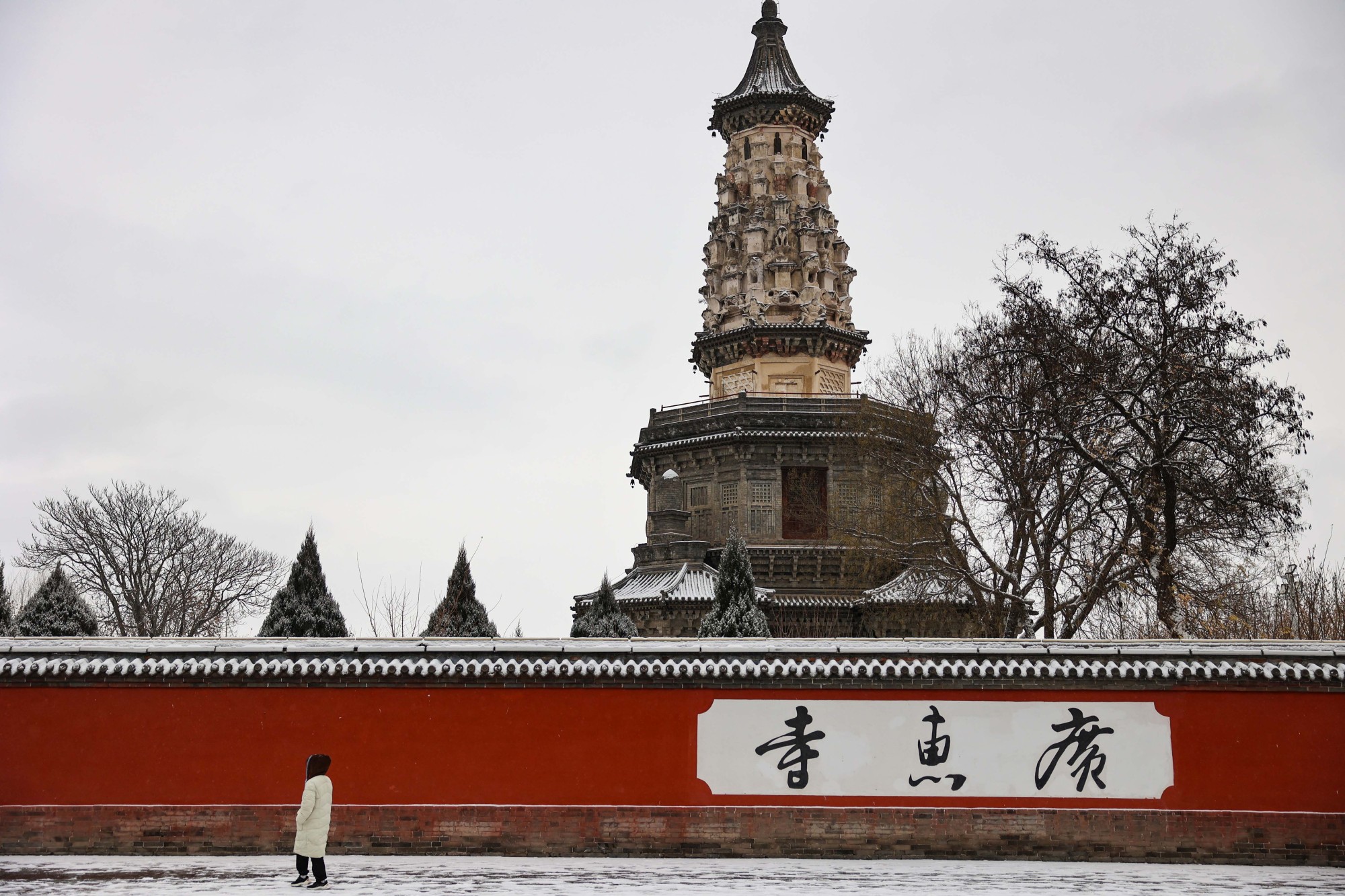 央广网石家庄1月14日消息(见习记者王伟倩)1月14日,是北方农历小年,河北省石家庄市迎来了2023年的首场降雪。走进正定古城内,随处可见青瓦白雪,红墙银衣的美丽景象,一座座古建筑在皑皑白雪的映衬下,更显得庄严宏伟,吸引了众多游客前来打卡拍照。