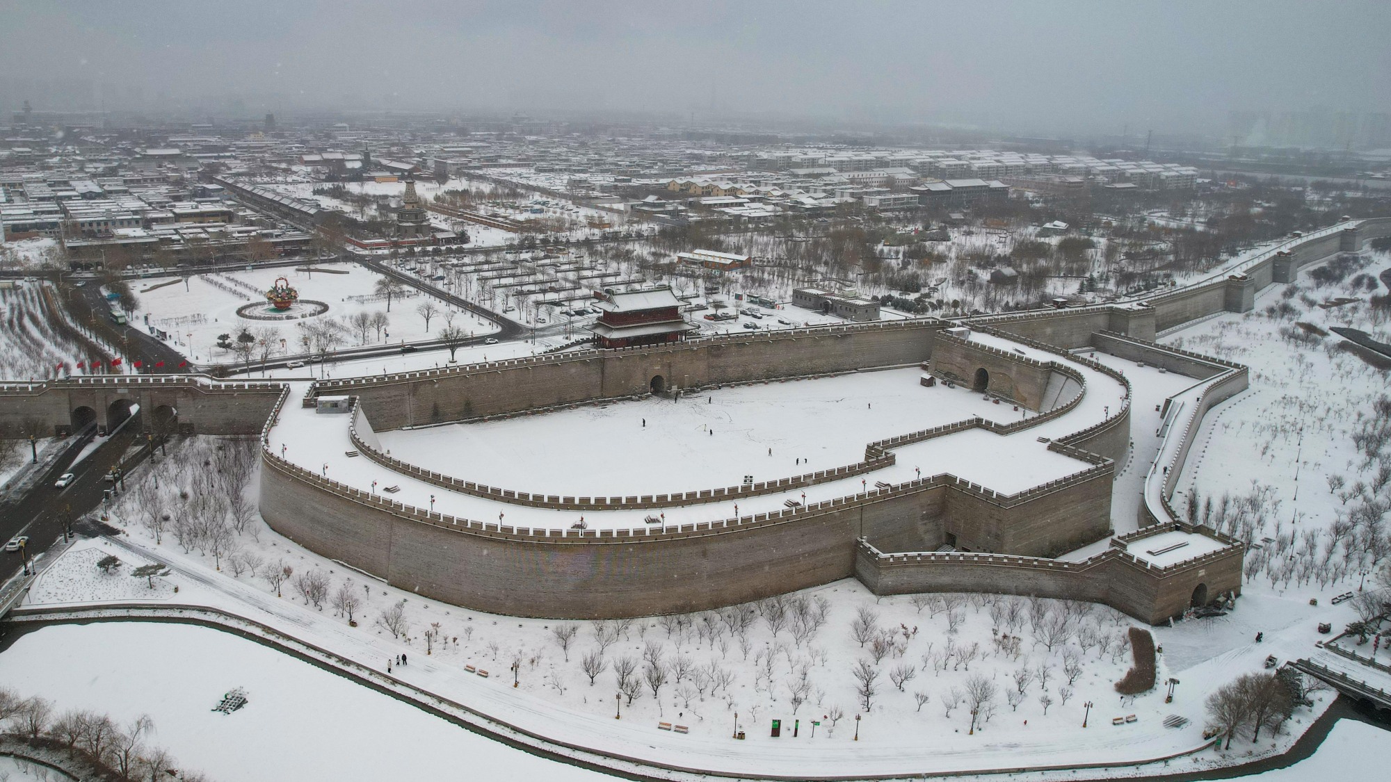 航拍正定古城雪景(央广网见习记者王伟倩摄)