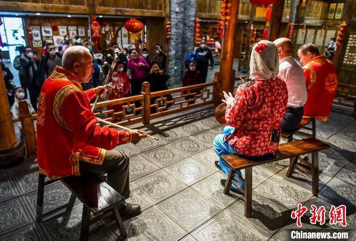 非遗展示区的秦腔展演吸引参观市民。 刘新摄
