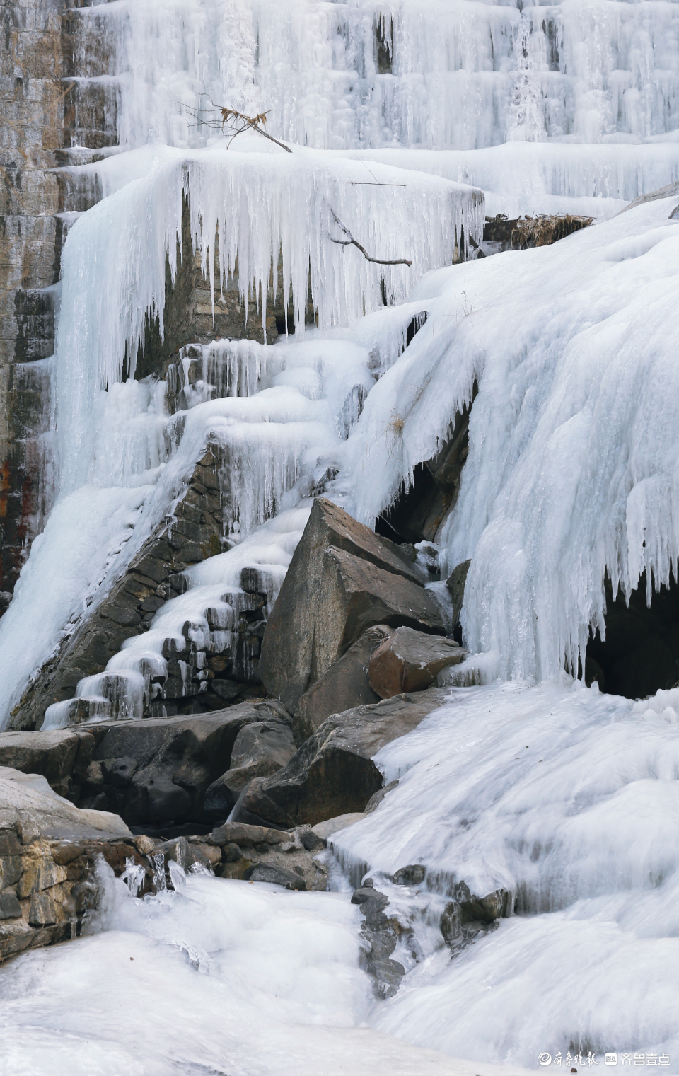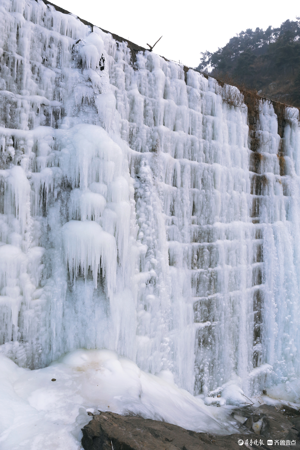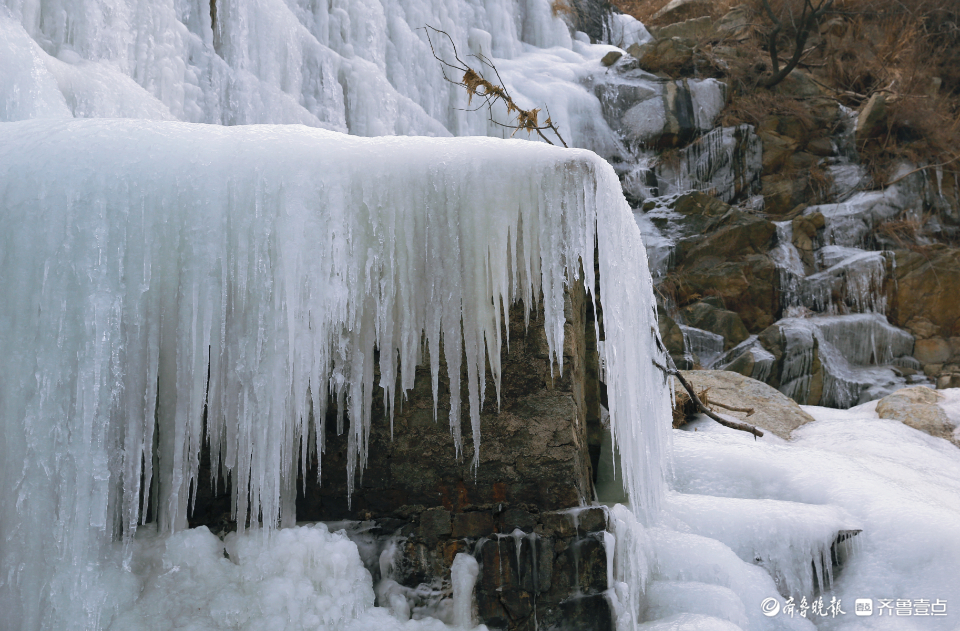 泰山深处有一宝藏冰瀑,你知道吗?每年深冬,泰安市泰山景区蒿滩市(村)水库水流经过大坝时都会形成壮观的冰瀑美景。