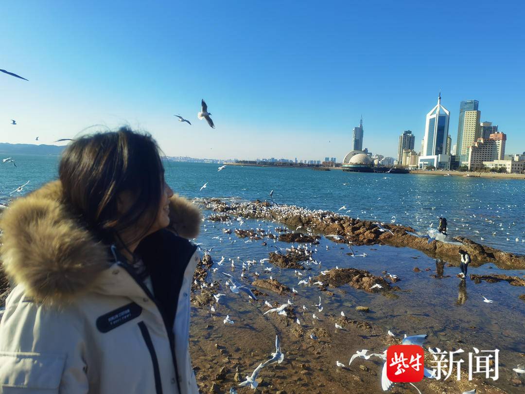 1月25日,艳阳高照,我一早来到了青岛的海边。我前往的景点名叫“青岛湾”。碧蓝的海水和蔚蓝的天空在远方“缠绵”,海浪一次次拍打着沙滩,又快速退去,海鸥低空盘旋不时发出“嗷嗷”的叫声……也许是因为难得的艳阳天,在海边的游人众多,还有游客开玩笑说道:“游人比海鸥还多!”