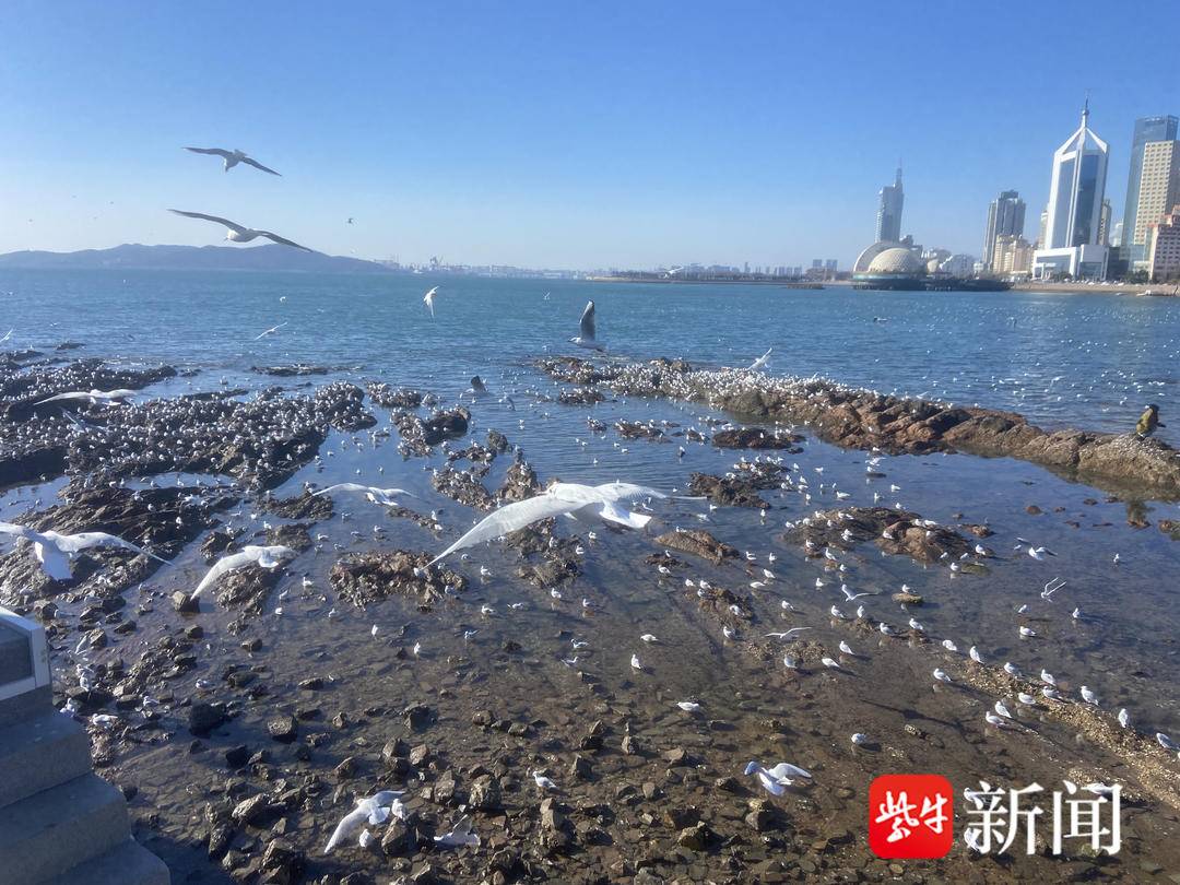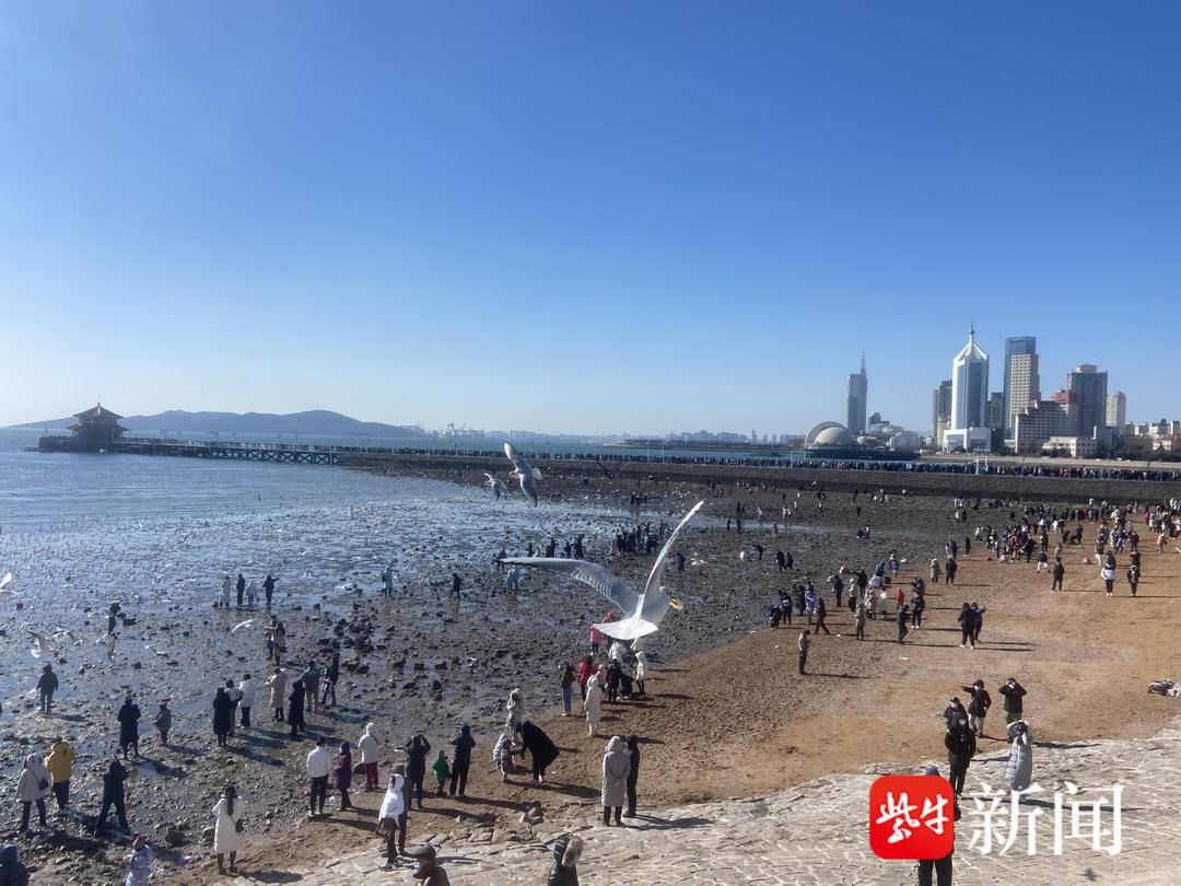 “清岛湾”有个著名景点——“栈桥”。“栈桥”由海岸前伸入海,有着100多年的历史,是青岛的著名地标之一,也引来了游人驻足、打卡。往栈桥深处走去,可以看到更远的海景。无数海鸥绕着栈桥两边盘旋,不少游人还会带一些吃食喂食海鸥。