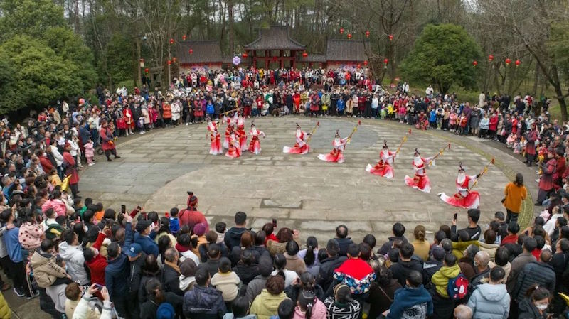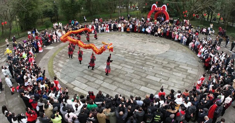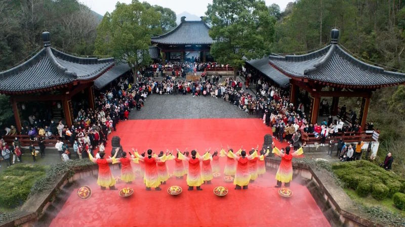 仙都景区,舞龙等节目每天为游客送上春节祝福