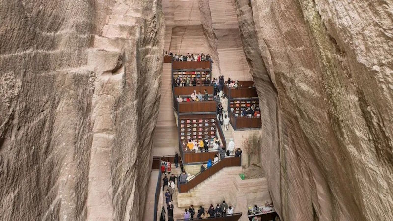 在不远处,上世纪废弃的采石场通过生态活化利用,华丽转身为集喜马拉雅有声读物、方寸咖啡于一体的岩宕书房,具有独特声学效果的不插电岩宕音乐厅,和独特视觉效果的岩宕露天剧场,成为远近闻名的区域文化新地标。