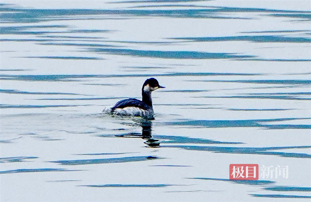 2月1日,极目新闻记者沿武汉市江夏区湖东路、藏龙二桥、庙山东路等环汤逊湖部分路段观察发现,汤逊湖内随处可见潜鸭、西伯利亚银鸥、䴙䴘等候鸟,其中不乏红头潜鸭、斑头秋沙鸭和黑颈䴙䴘等珍稀濒危或保护物种。在纳帕溪谷小区、武汉设计工程学院等附近湖域,聚集了两大群潜鸭等水鸟,数量约3000只。最近的离岸边湖景路不到百米,肉眼可清晰可见,用手机都可拍摄到较为清晰的鸟照。
