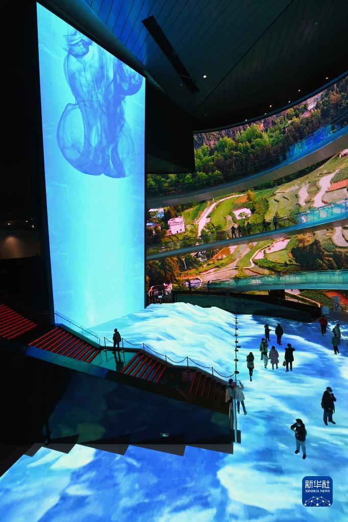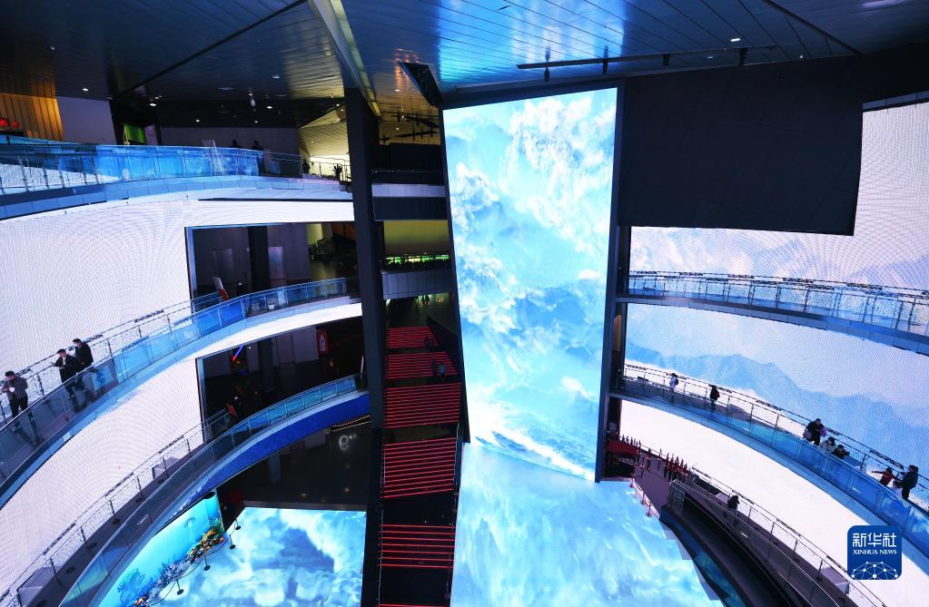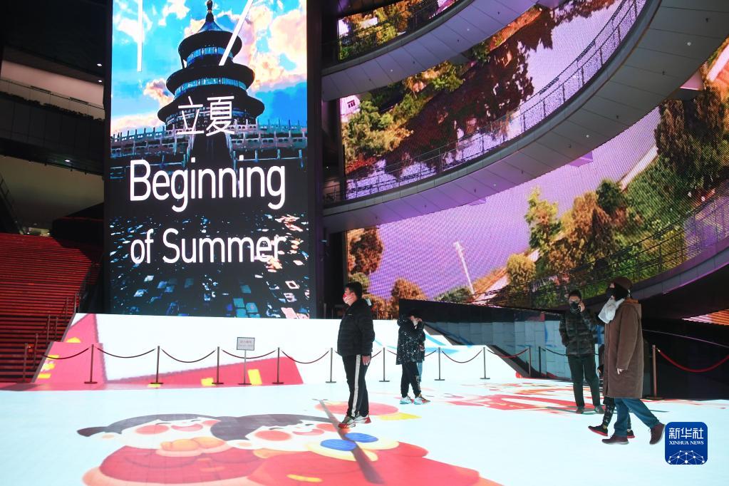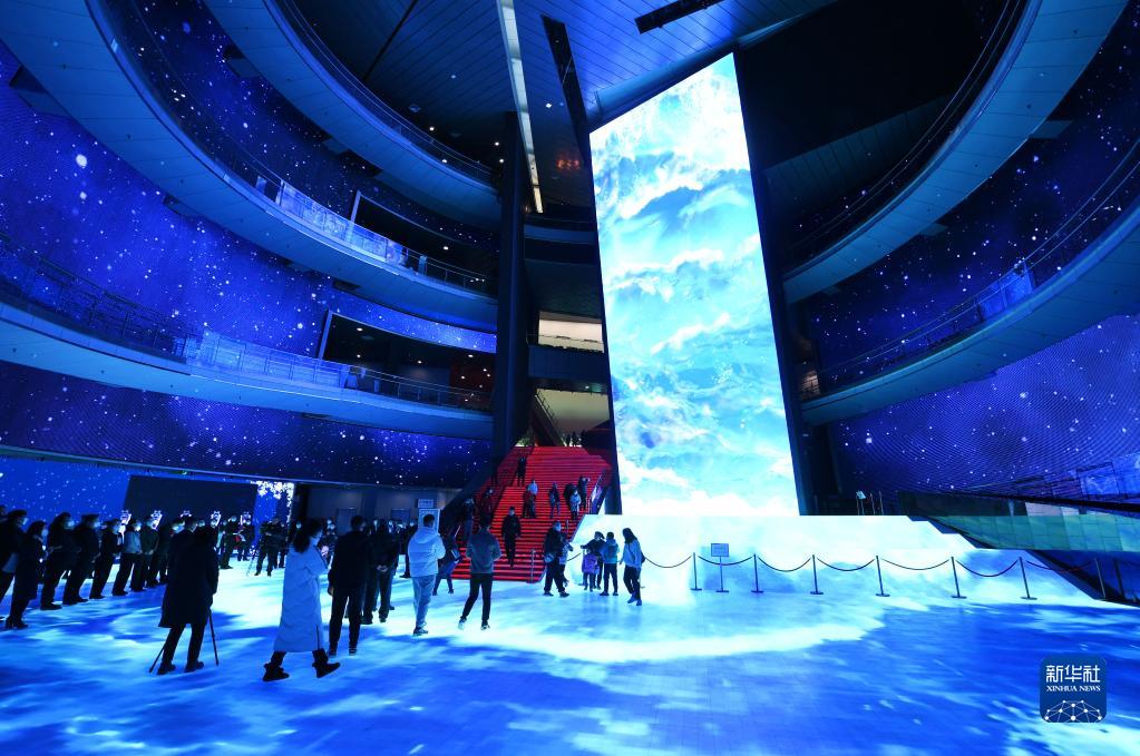 2月4日,观众在中国电影博物馆参观北京2022年冬奥会开幕式大屏幕。新华社记者任超摄