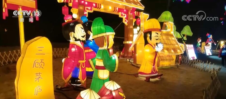 卧龙岗景区工作人员冀柯:设置了300多组彩灯,把三国故事和我们的民俗文化、非遗节目串联在一起了。