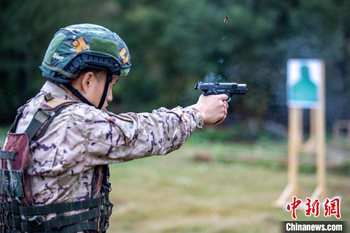 特战队员正在进行手枪多种姿势射击课目考核。 梁承杰摄