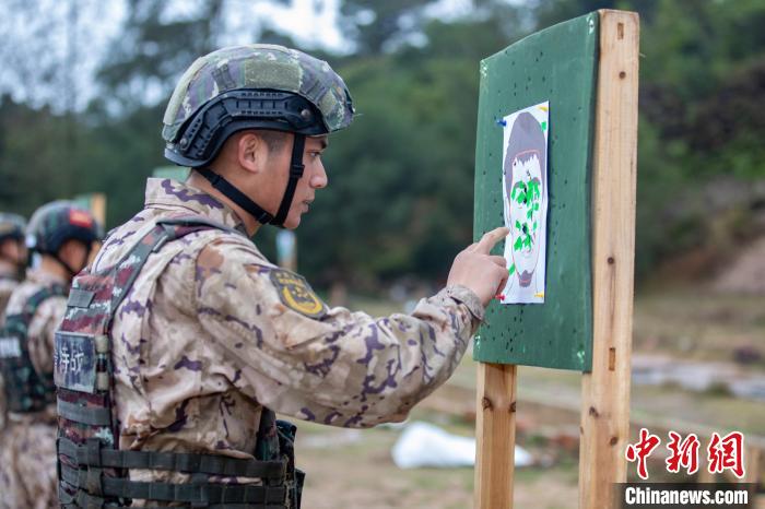 特战队员正在检查射击上靶情况。 刘坚摄
