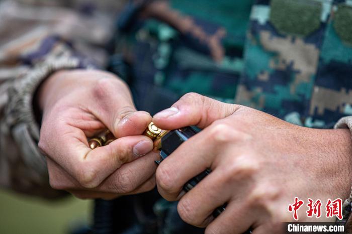 特战队员正在将子弹压入弹匣。 刘坚摄