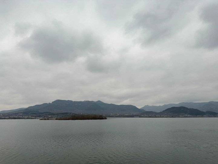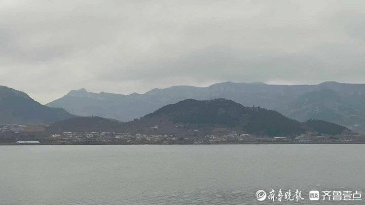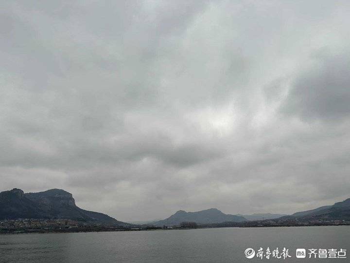 今天的济南,云雾蒙蒙。这种天气下的卧虎山水库山水相依,犹如一幅山水画。