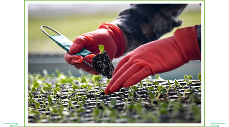 △2月1日,工人在宁夏银川市贺兰县景沃佳禾种苗繁育基地一大棚内补苗。