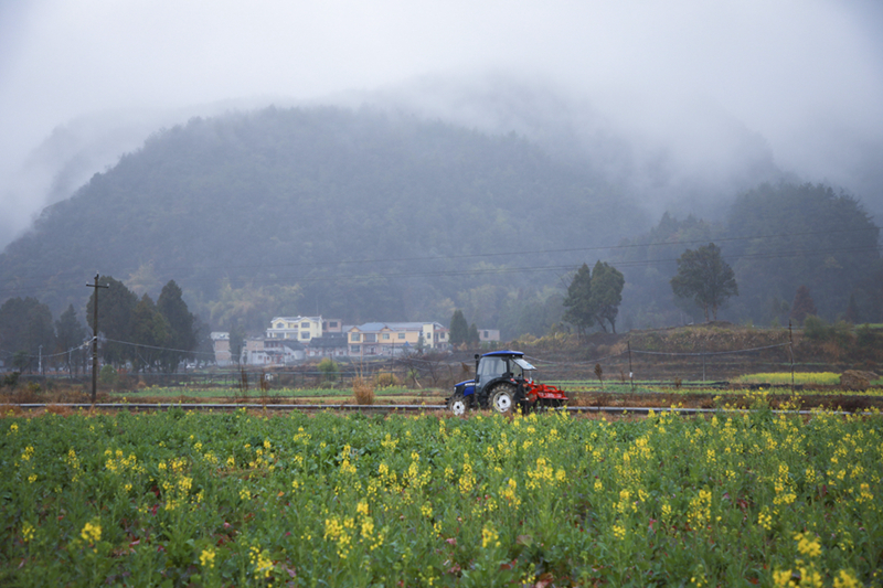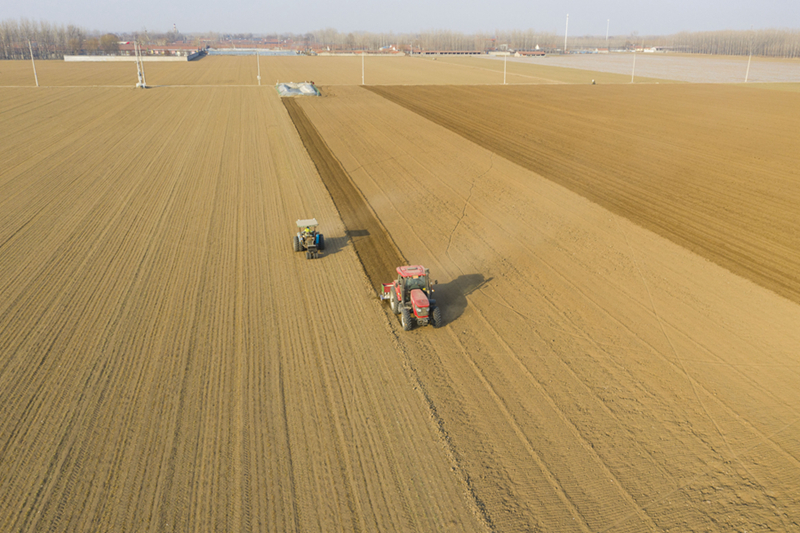 △2月14日,在安徽省蚌埠市五河县头铺镇,农民驾驶农机给小麦喷洒农药。