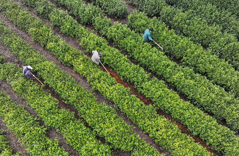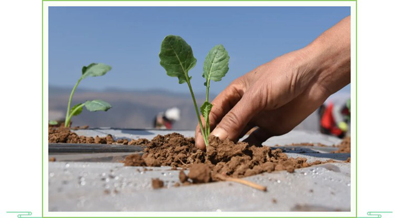 △1月29日,在云南省大理白族自治州鹤庆县辛屯镇西兰花种植基地,村民在移栽蔬菜苗。