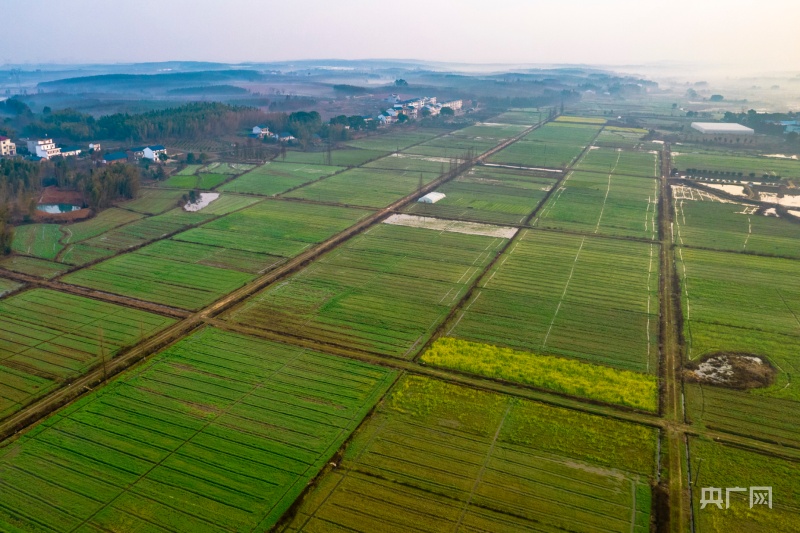 央广网新余2月19日消息(记者邓玉玲)近日,清晨时分的江西省新余市渝水区罗坊镇东边村高标准农田生机盎然,冬天分批种下的油菜黄绿相间传递着春天的气息。