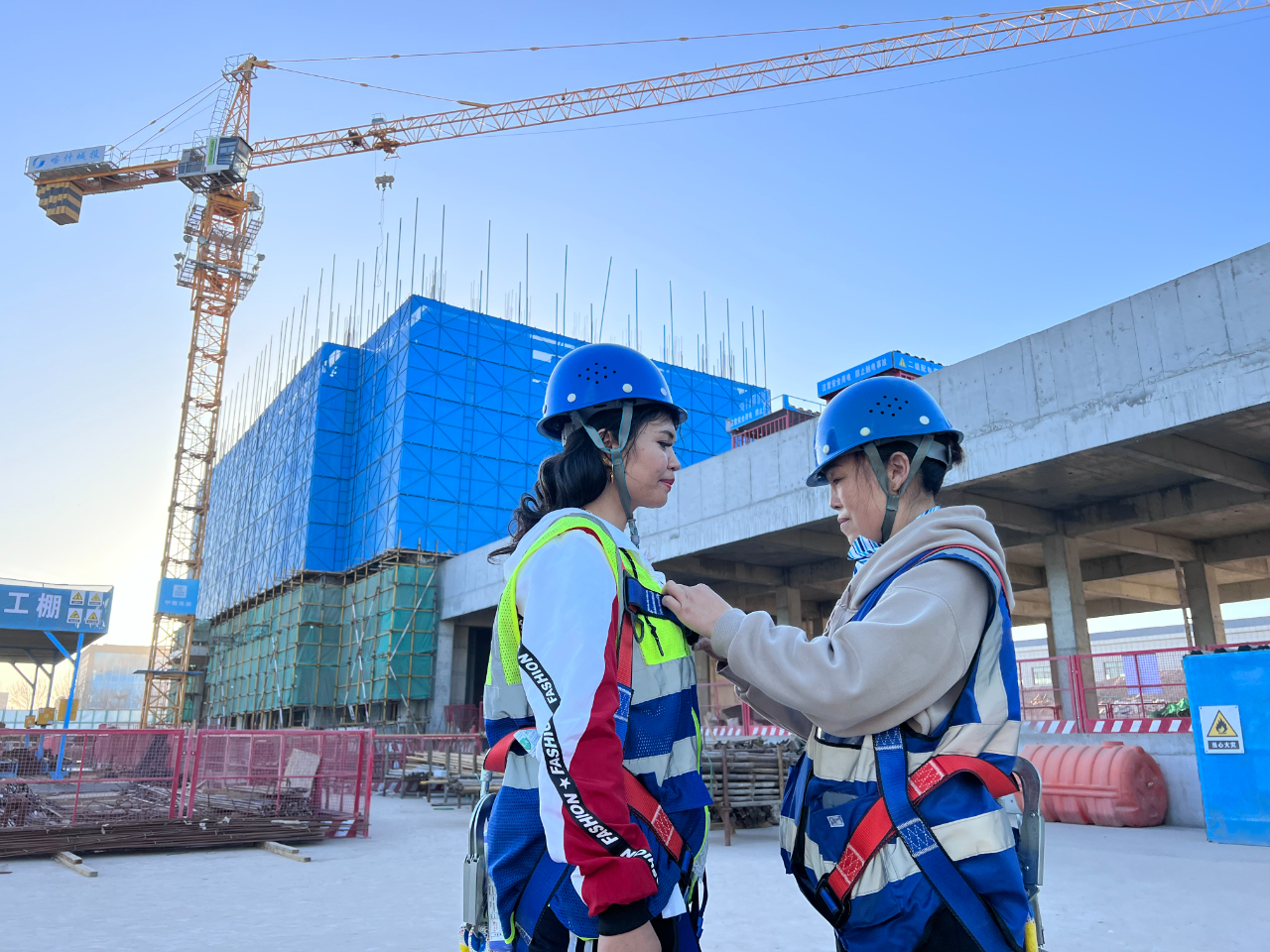 在中建三局新疆喀什和安名苑项目施工现场,有一对塔吊“姐妹花”,他们一个维吾尔族、一个汉族,一个长发、一个短发,两人共同配合操作一台动臂塔吊。