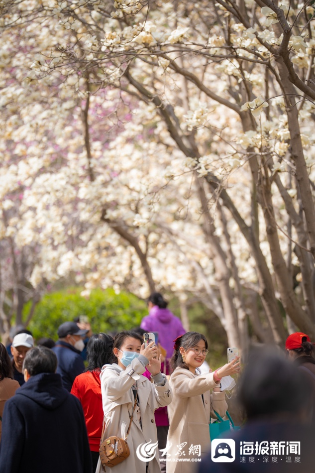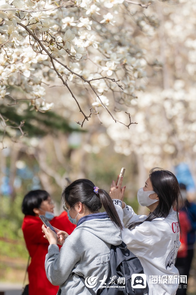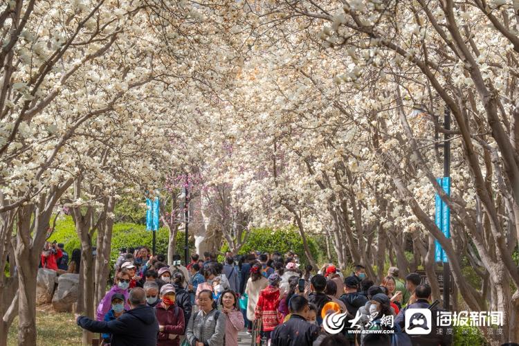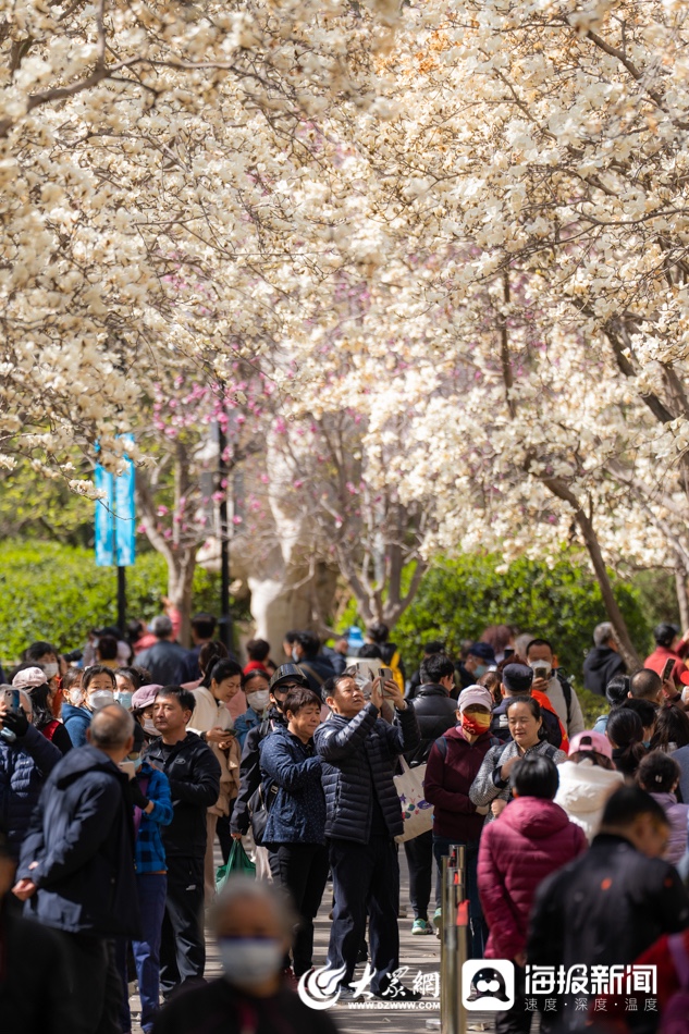 3月13日,经过了周末大风加降温天气的洗礼,济南百花公园里的500余株玉兰花依旧坚守在枝头盛开。正值工作日,公园里仍有不少游人,赶在花期结束前来欣赏这条“限时版”玉兰大道的风采。据了解,济南百花公园的玉兰,无论树体还是数量,在济南都是首屈一指的,百花公园内有500余株玉兰花,1989年建园就开始栽植,部分玉兰树龄超过40年。