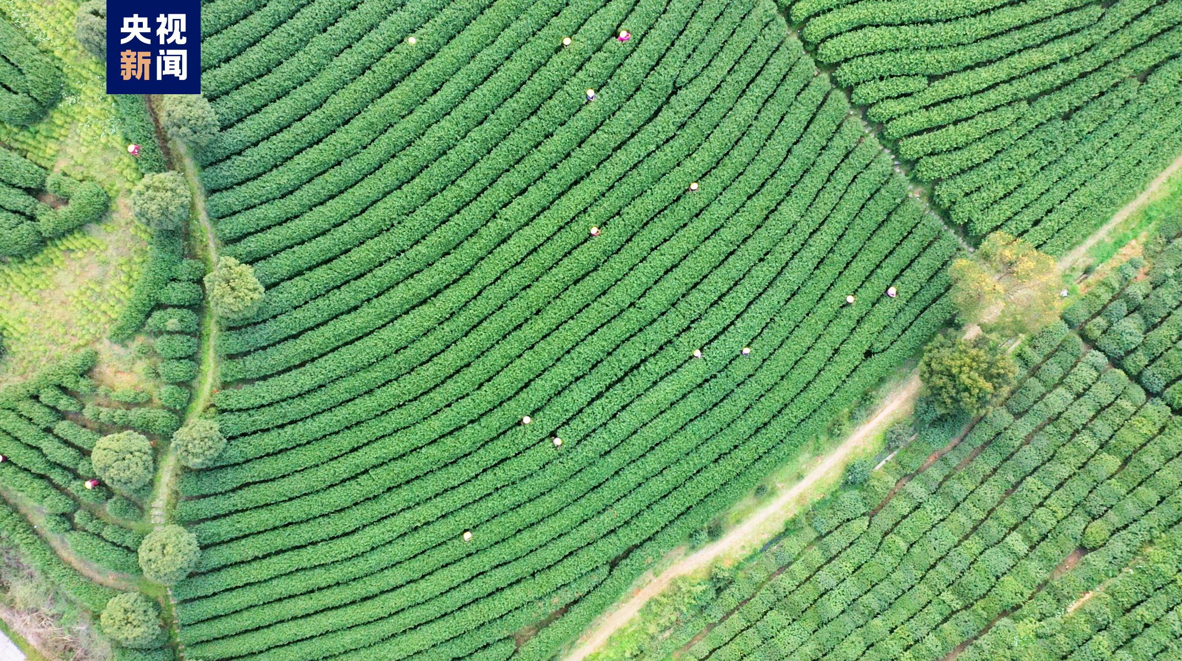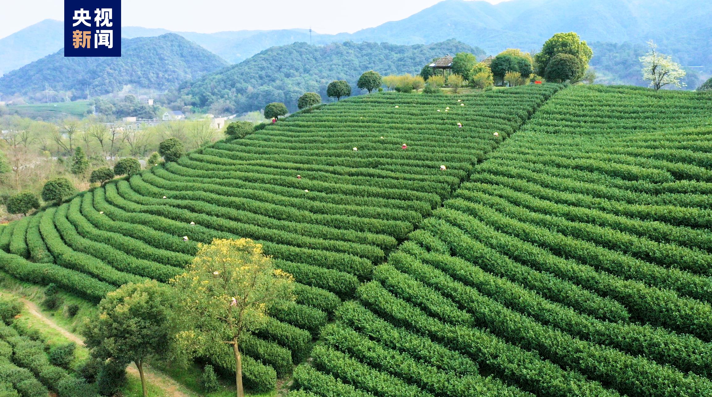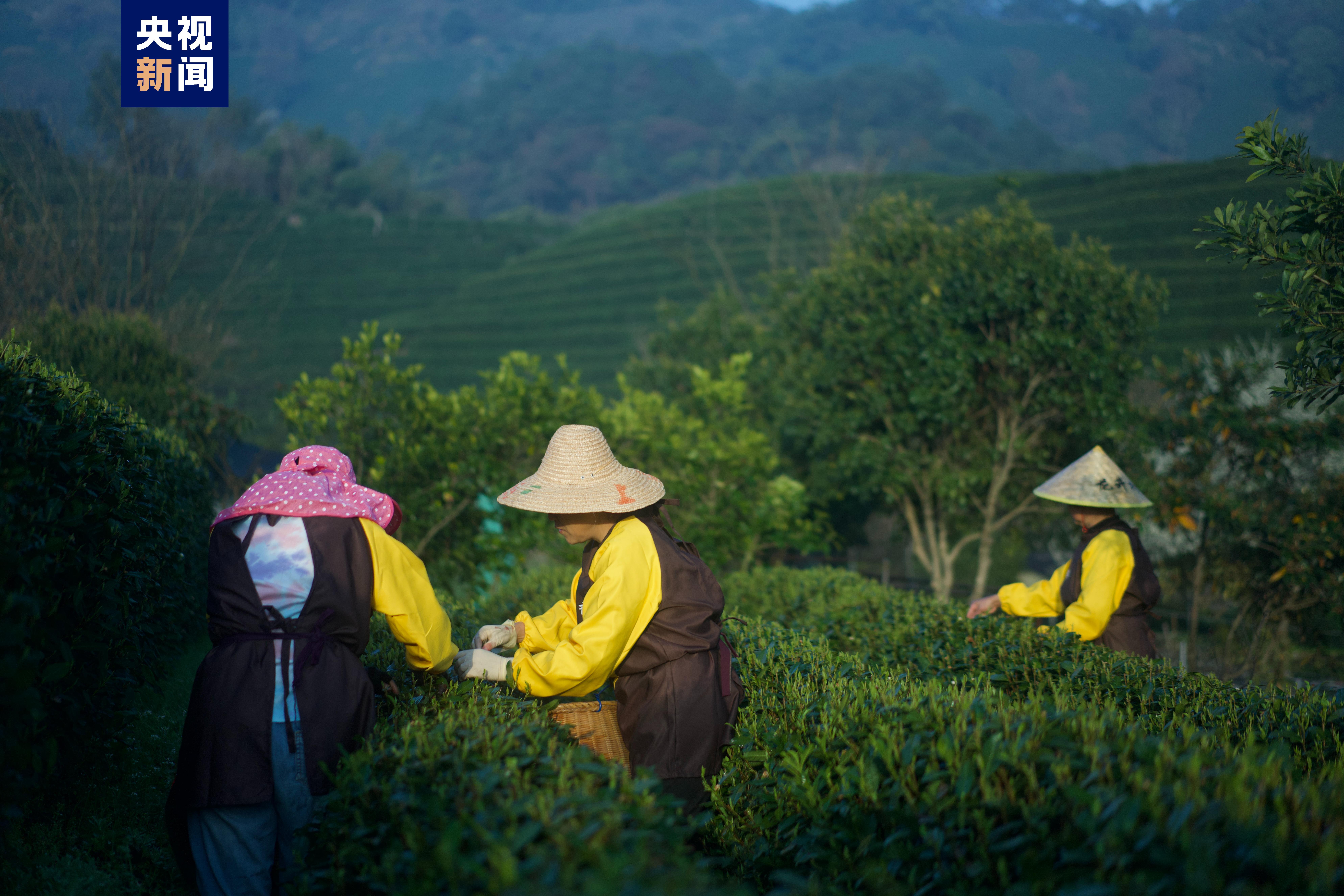 一大早,在浙江杭州西湖区龙井村的茶园里,茶农们趁着晴朗天气,早早来到茶园开始采摘今年第一批西湖龙井茶。据了解,目前开始采摘的主要是“龙井43”品种,群体种西湖龙井茶将于本月下旬正式开采。