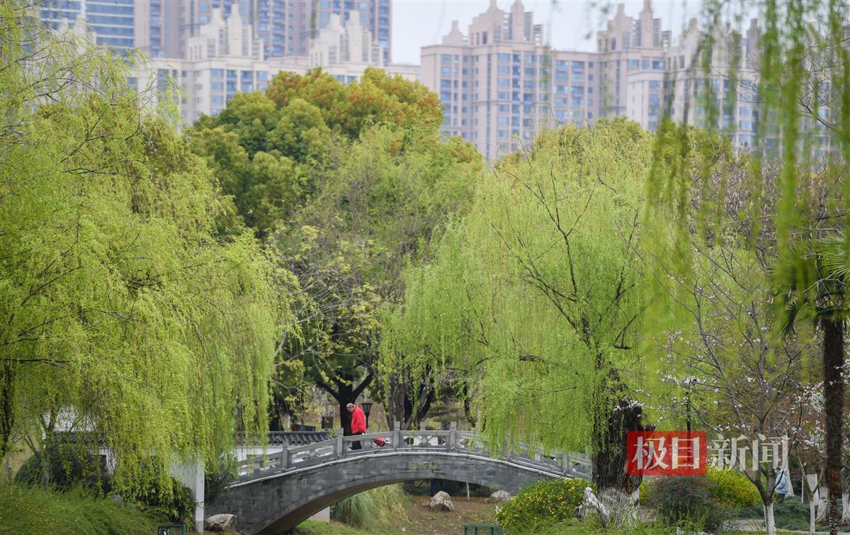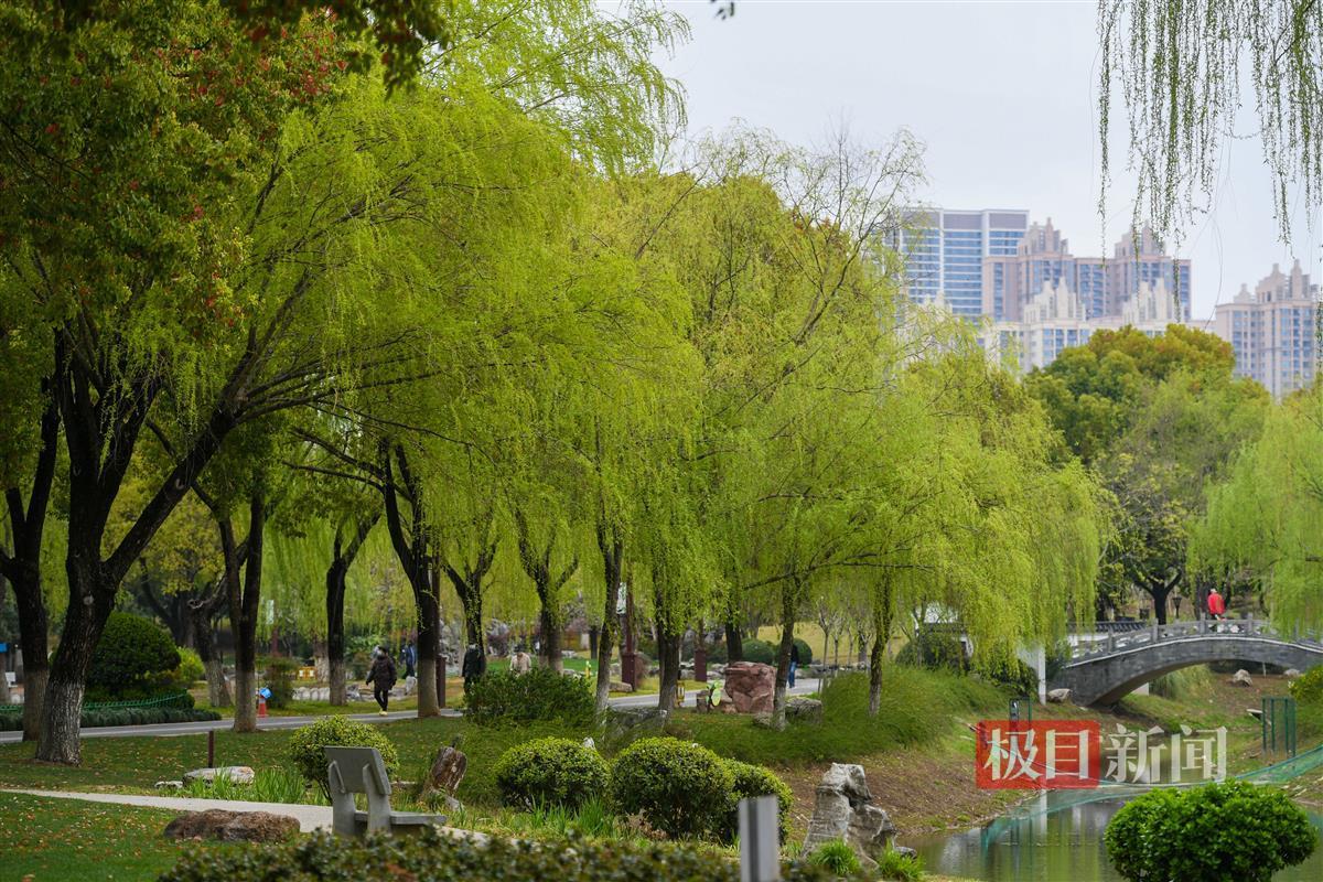 3月17日,虽然武汉遇上冷空气降温,但无法阻挡春的气息的来临。记者在堤角公园内看到,公园湖边的垂柳已吐出新芽,微风吹拂,鹅黄、浅绿的缕缕柳枝轻轻摆动,绘就了一幅美丽的春景。