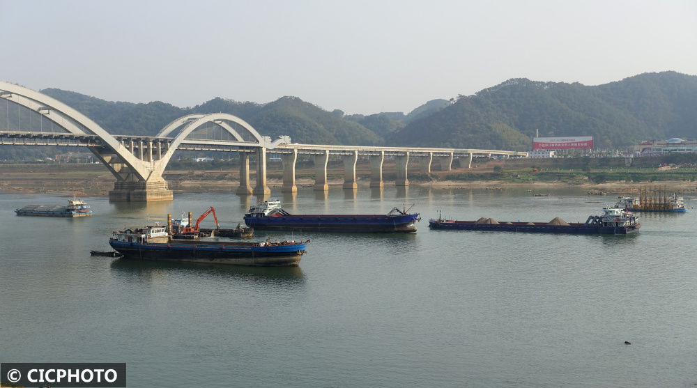↑2023年2月16日,货船行驶在西江广西梧州市水域。CICPHOTO/廖祖平摄