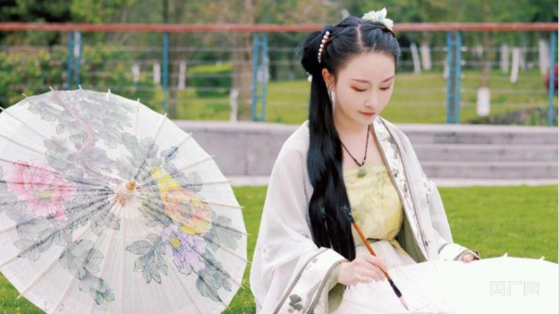 撑起自己绘画的油纸伞(央广网发重庆城科供图)