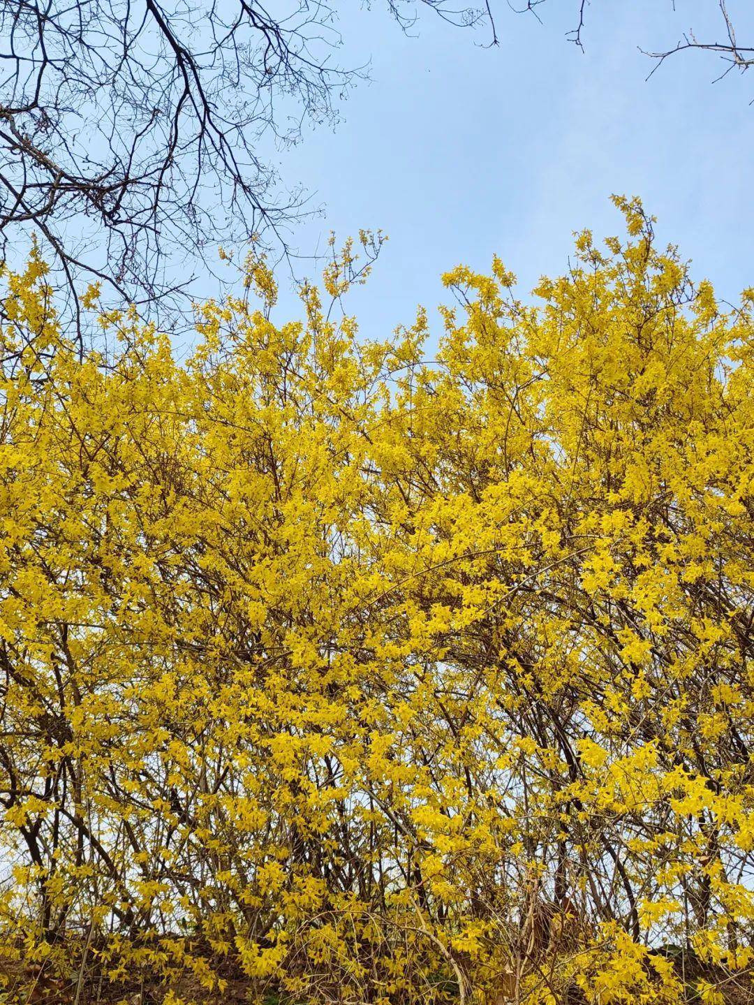 “金英翠萼带春寒,黄色花中有几般。凭君与向游人道,莫作蔓菁花眼看。”迎春花在渔湾景区肆意惊艳,金灿灿的成片绽放,寂静又壮阔;“暖气潜催次第春,梅花已谢杏花新。”