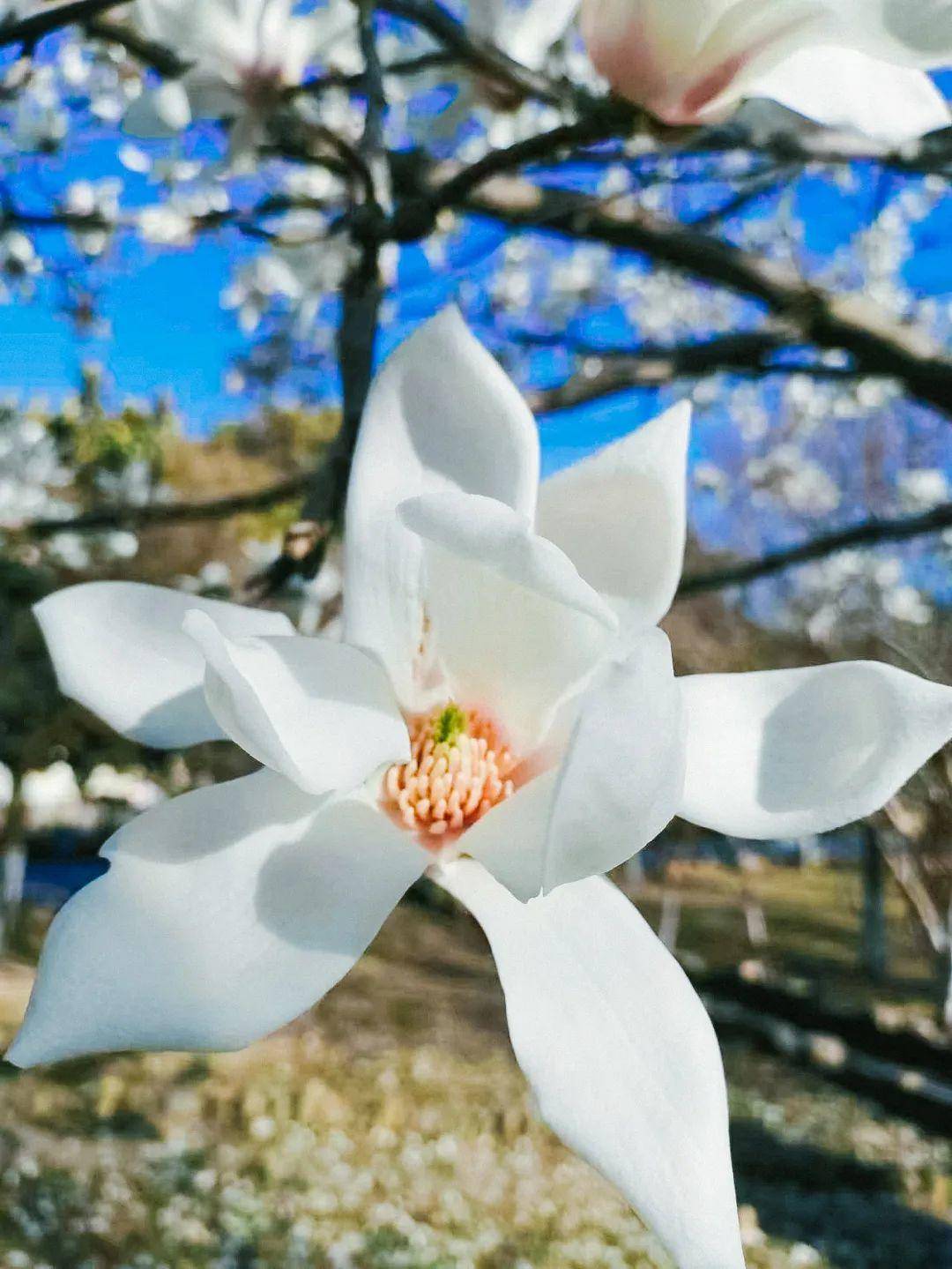 玉兰芽苞挣脱了外衣,绽放皎洁,娴静素雅,如仙女的衣裙,洁白晶莹,如月光轻洒。